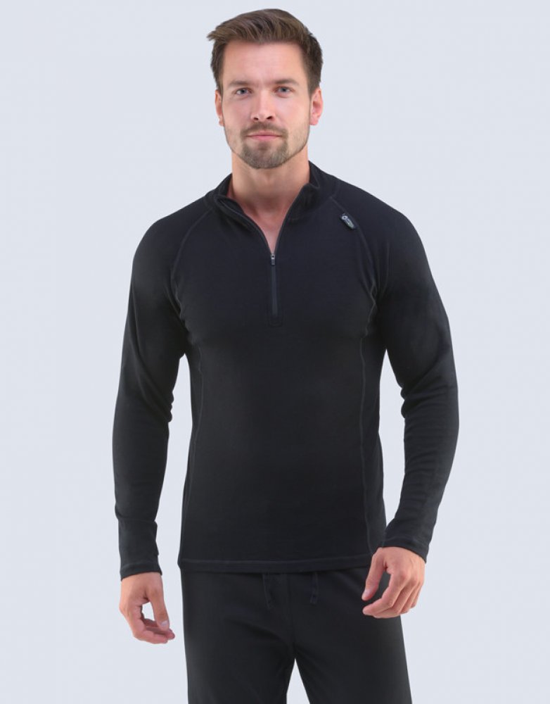 Gina pánský rolák se zipem s dlouhým rukávem Merino 88016P černý