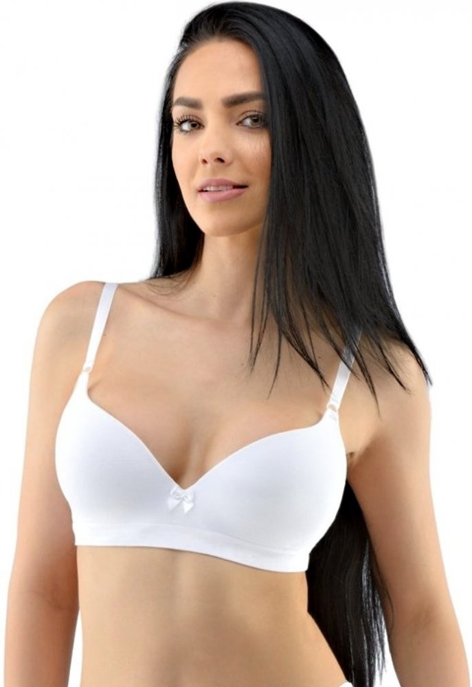 Podprsenka s kosticemi a lisovanými košíčky, dámské bezešvé prádlo. Vnější část podprsenky je z bambusového materiálu, košíčky jsou z polyuretanové pěny, která je uvnitř potažena bavlněným materiálem. Okraje košíčků jsou hladké bez lemovek. Ramínka jsou nastavitelná. Podprsenka je jednobarevná. Zapínání je třířadé na 2 háčky. Na předním díle je mašlička. Podprsenka je vhodná pro každodenní běžné n...