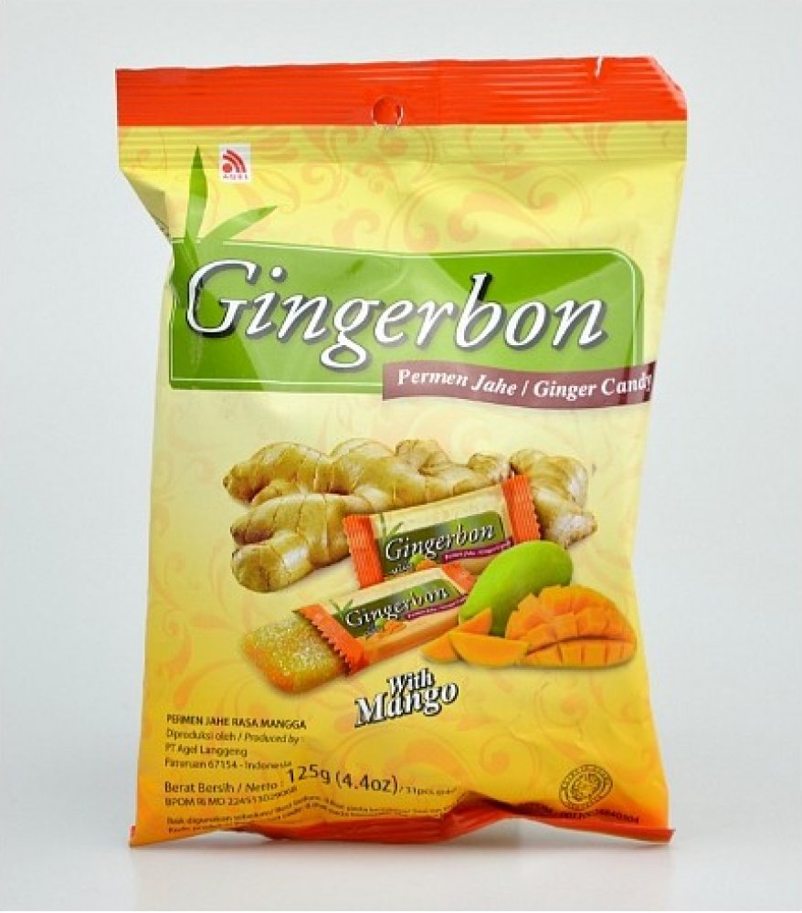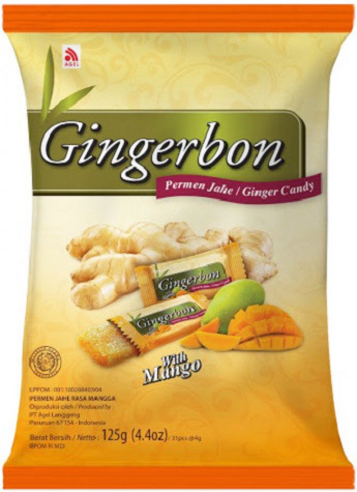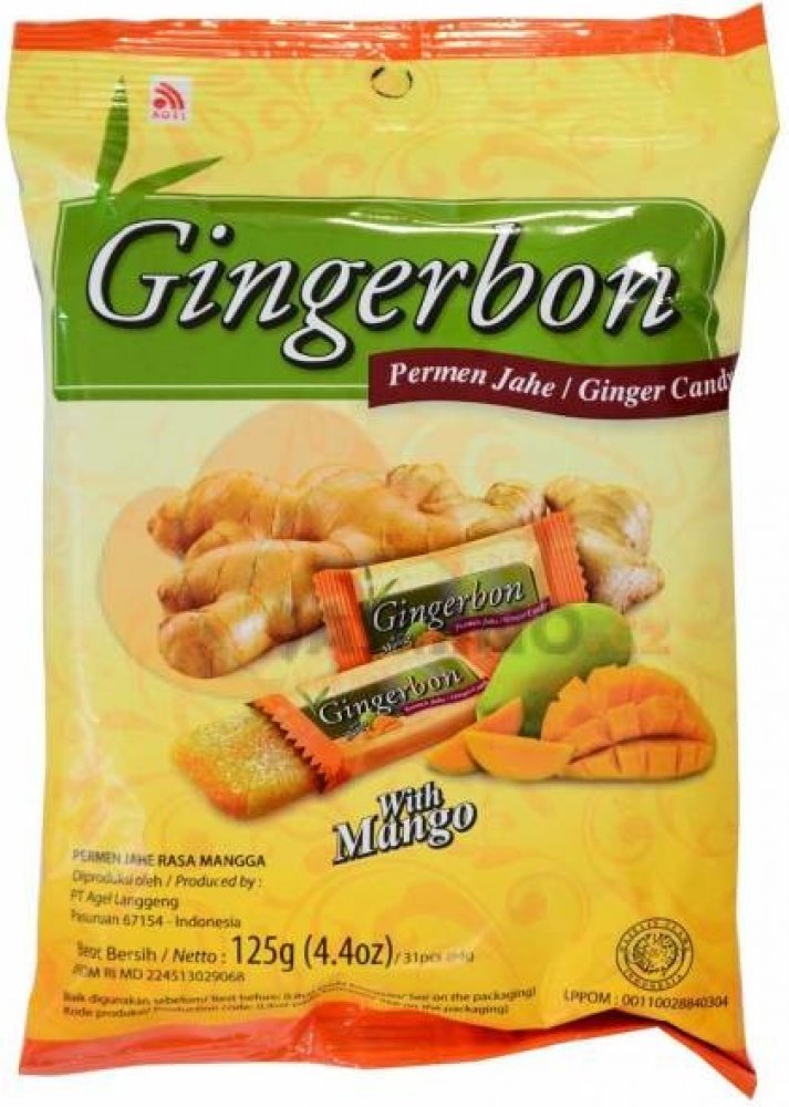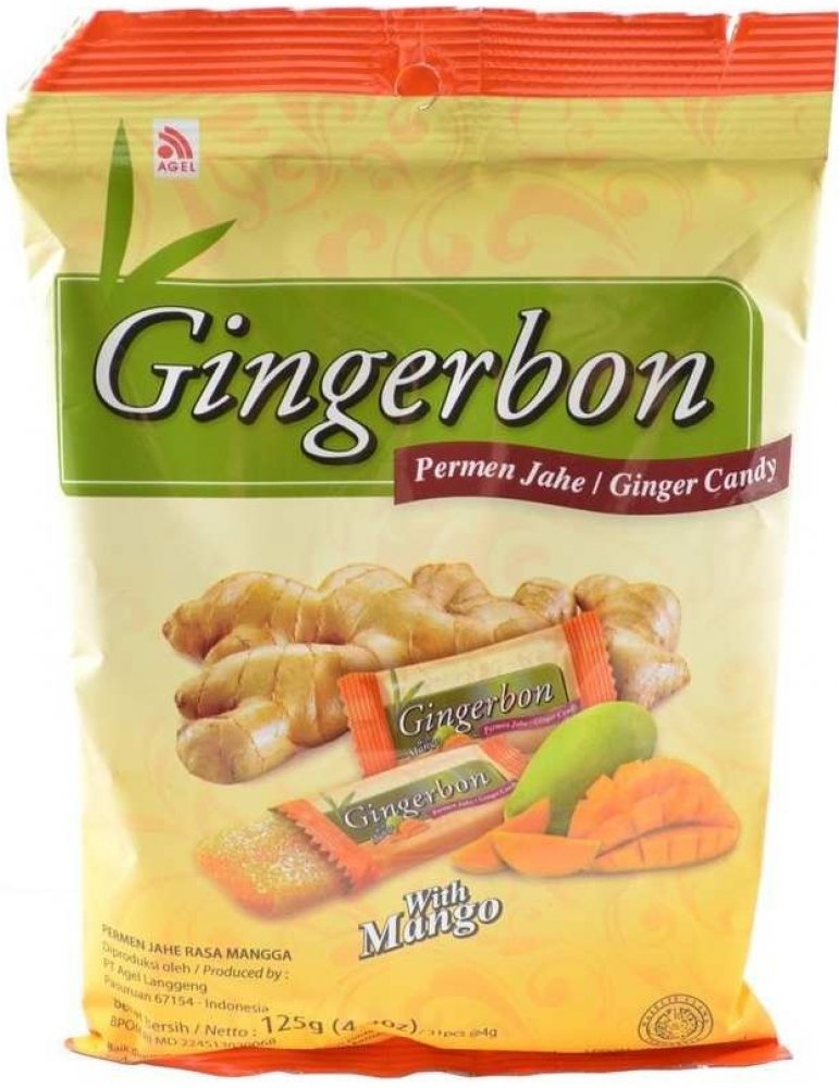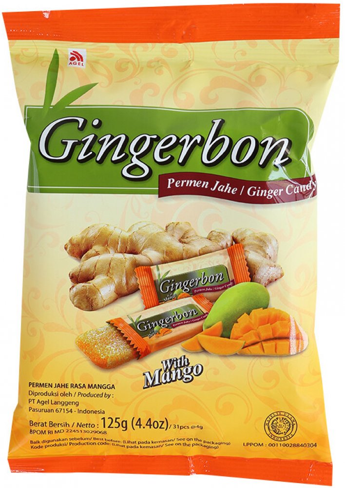 Složení: cukr 77,95%, tapiokový škrob 13,47%, zázvor 7,4%, hydrogenovaný kokosový olej 0,88%, mangové aroma 0,16%, mang...