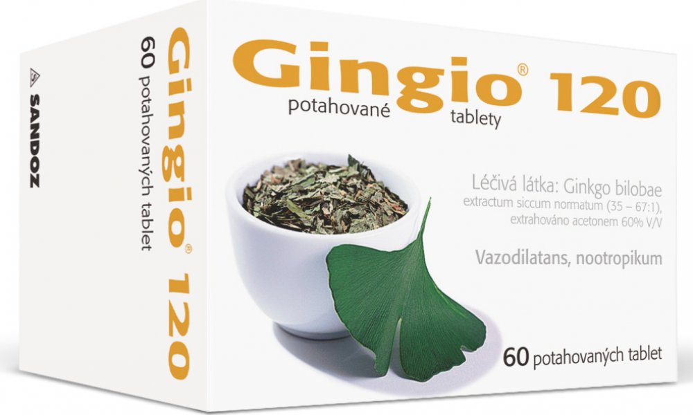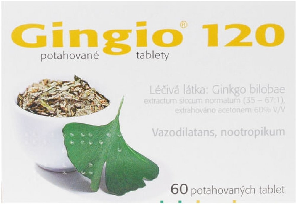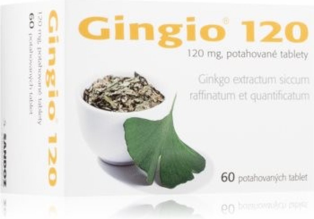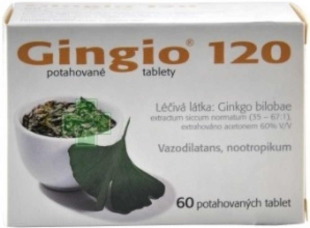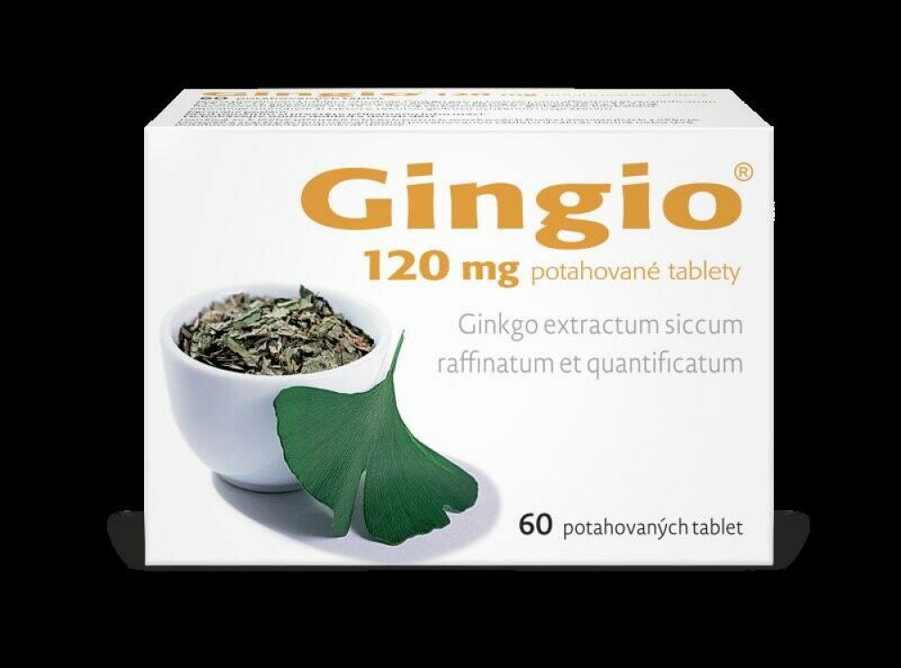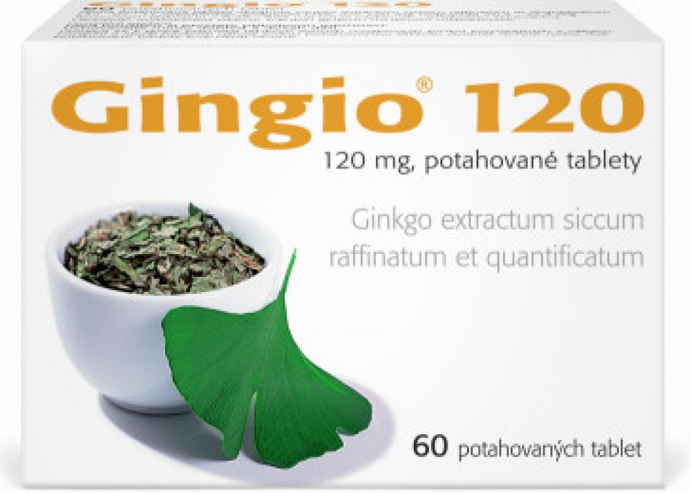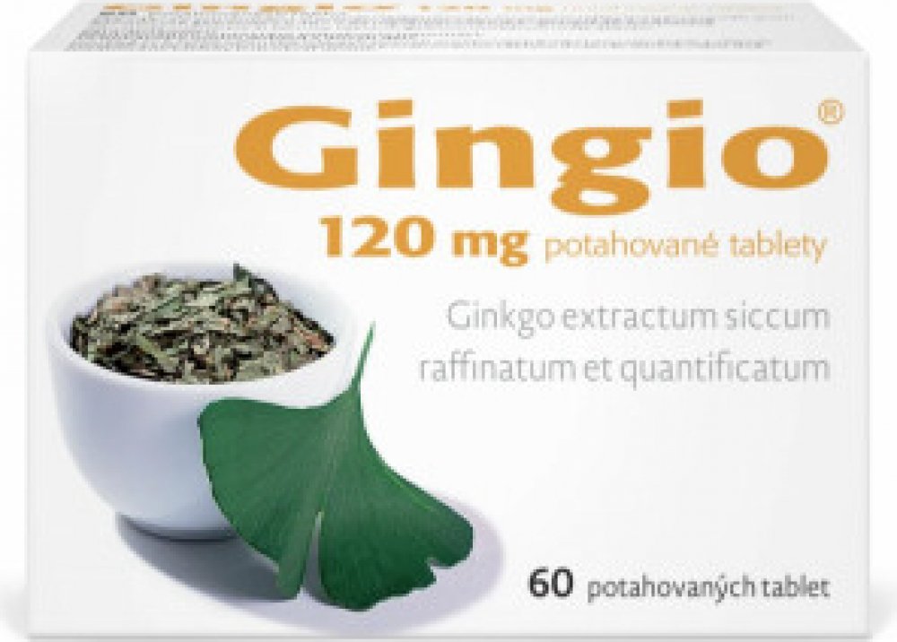 Gingio® 120 mg potahované tablety, volně prodejný lék k vnitřnímu užití s účinnou látkou: suchý, čištěný a kvantifikovaný jinanový extrakt. Čtěte pozorně příbalovou informaci.