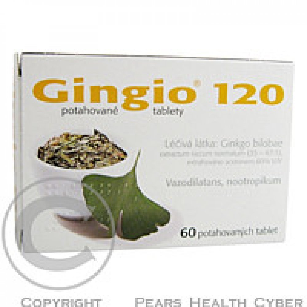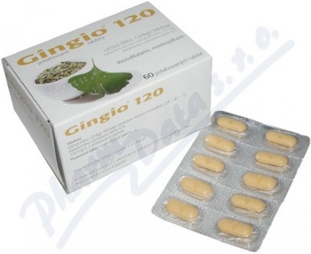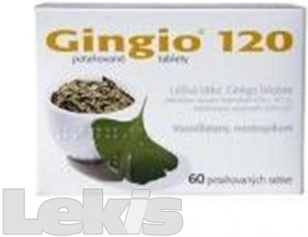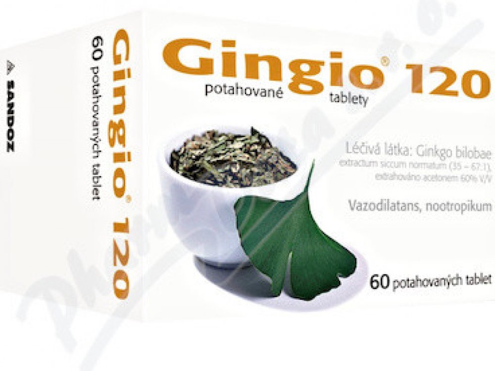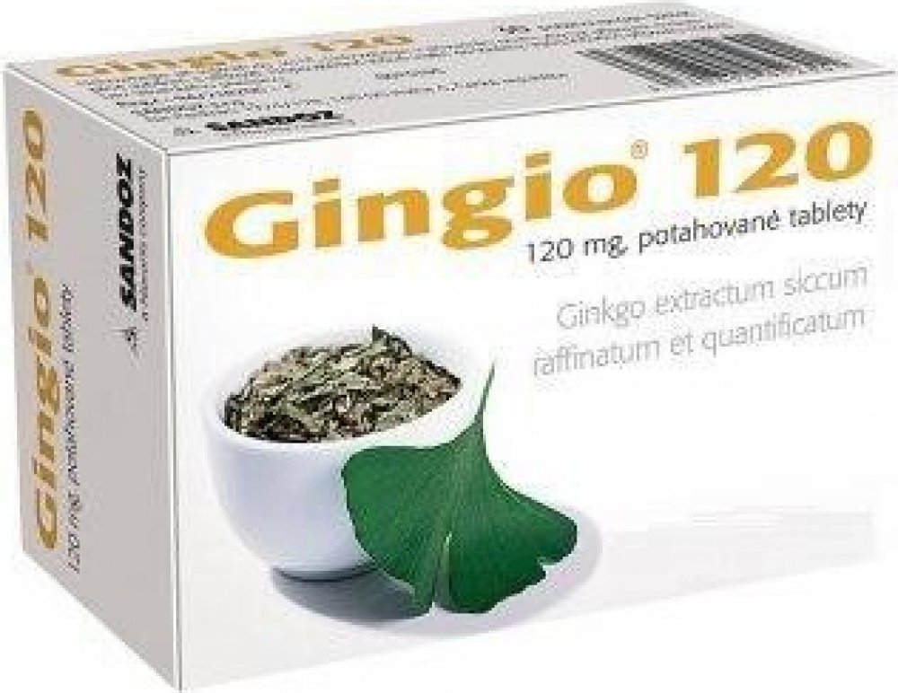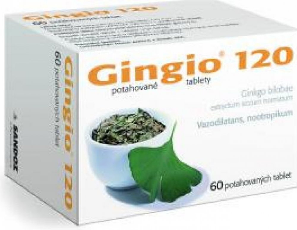 Gingio® 120 mg potahované tablety, volně prodejný lék k vnitřnímu užití s účinnou látkou: suchý, čištěný a kvantifikovaný jinanový extrakt. Čtěte pozorně příbalovou informaci.