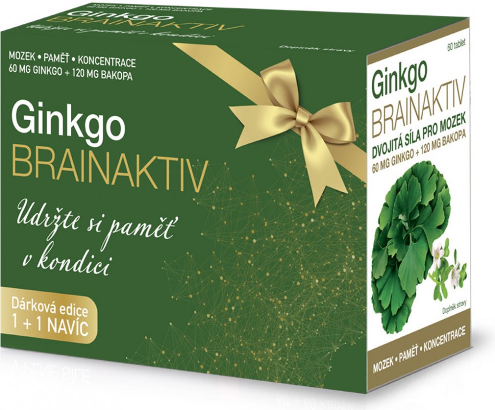 Přípravek s vysokým obsahem standardizovaných extraktů ginkgo biloba a bakopy drobnolisté na podporu mozkové aktivity, paměti a kognitivních funkcí. Nyní ve vánoční limitované edici 1+1 ZDARMA s exkluzivním obalem.
