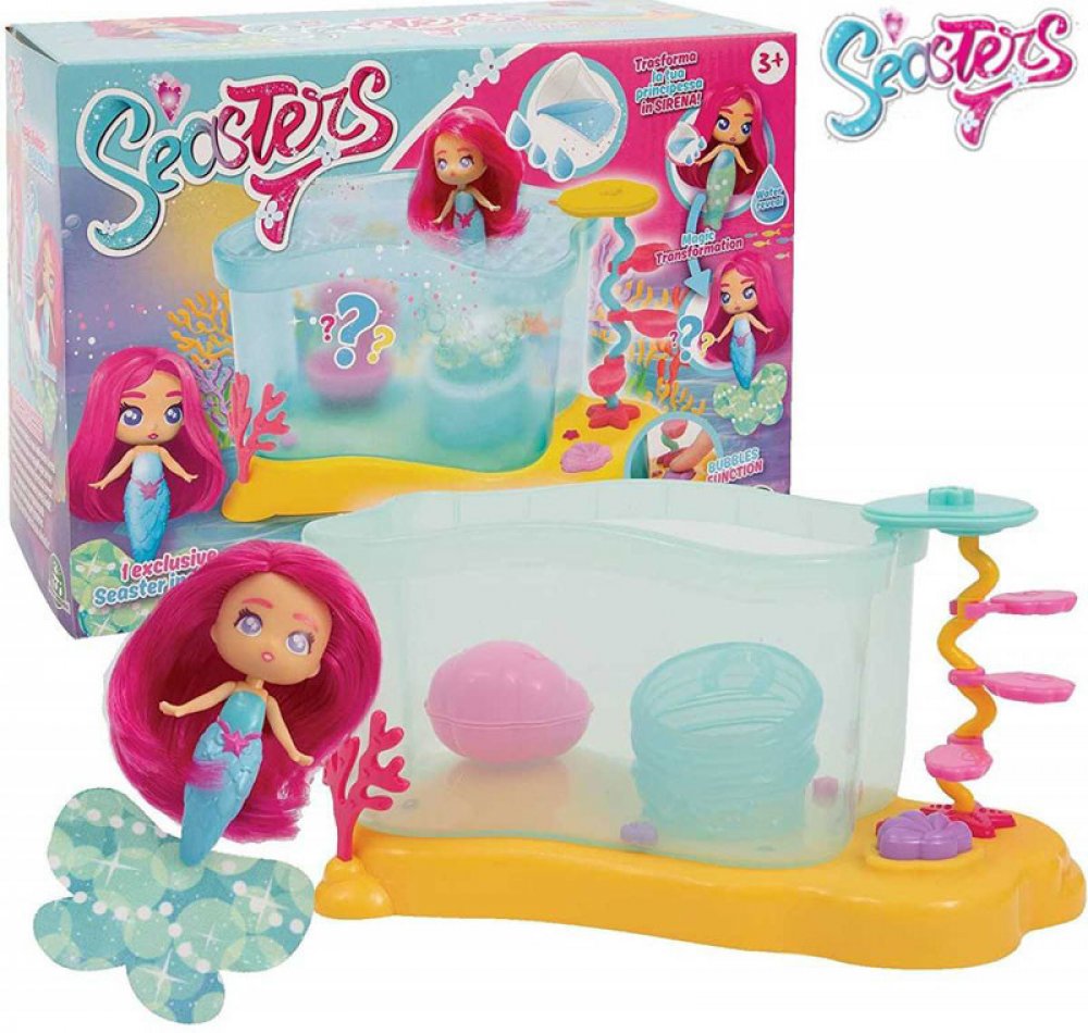 Panenky Seasters, které pocházejí ze vzdálených moří a oceánů, jsou mezi malými holčičkami velmi oblíbené. Jako překvapení mohou ti nejmenší zjistit, která mořská panna se v akváriu skrývá. Po otevření stačí vložit do vody a počkat, až se stane kouzlo a panenka princezna se promění v krásnou mořskou pannu.
