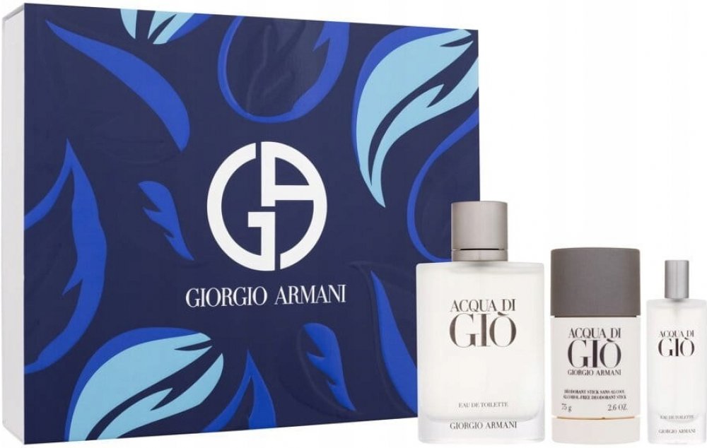 Aromaticko-akvatická vůně **Acqua di Gio** začíná sprškou svěžích citrusů zasypaných okvětnými lístky jasmínu a neroli. Poté pocítíte mohutný příliv mořské vody, která se mísí s květinovými tóny a špetkou muškátového oříšku. Mužnost dodává vůni pačuli, cedr, dubových mech, ambra a pižmo, coby základní složky toaletní vody. V roce 1998 se tato toaletní voda od Giorgio Armani stala nejlepší pánskou vůní. Není přehnaně extravagantní, je lehká a hodí se do teplého počasí pro každodenní nošení.