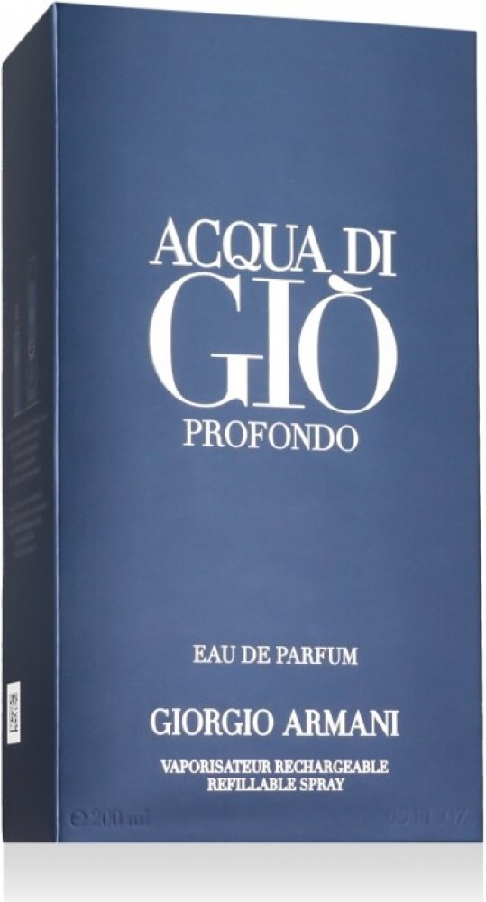 Acqua di Giò Profondo Eau de Parfum (2024) by Giorgio Armani je nová interpretace ikonické pánské vůně, která spatřila světlo světa v roce 2024 pod taktovkou legendárního parfuméra Alberta Morillase. Tento aromaticko-akvatický parfém je moderní oslavou hloubky oceánu, svobody a mužské síly – svěží, energický a zároveň elegantní. V úvodu vůně se otevírá svěžím vánkem mořských tónů, doplněným o šťavnatý a lehce zelený akord zelené mandarinky, který působí jiskřivě a přirozeně.Střední tóny přinášejí aromatickou klasiku v moderním podání – intenzivní rozmarýn a jemná levandule dodávají vůni strukturu a mužný charakter, aniž by byla těžká nebo zastaralá. Tato fáze parfému navozuje dojem čistoty a elegance, připomínající čerstvě oholenou tvář a dobře padnoucí oblek.V základu se vůně usazuje do komplexní a hluboké kompozice tvořené minerálními tóny, vzácným ambra gris, ušlechtilým cedrem, zemitým pačuli a smyslným pižmem. Právě tyto složky dodávají parfému dlouhou výdrž a mužnou eleganci. Acqua di Giò Profondo Eau de Parfum (2024) je ideální parfém pro muže, kteří hledají svěží, ale zároveň sofistikovanou vůni vhodnou pro každodenní nošení i formální příležitosti. Je to moderní klasika s hloubkou a osobností, která neztrácí kontakt s přirozeností a lehkostí moře.
