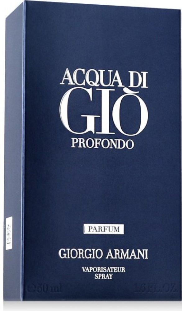 Acqua di Gio Profondo Parfum odhaluje intenzivní, pryskyřičnou a minerální stránku Acqua di Giò Profondo. Již při první vůni vystupuje zářivá, jiskřivá mořská svěžest, připomínající intenzitu vlny. Pocit vytvořený teplými, slunečnými tóny akordu bergamotu v kombinaci s pikantní citronovou esencí a charakteristickým mořským tónem Acqua di Giò. Následuje slaměnka, která vůni dodává bohatost a hutnost. Extrahováno parní destilací, přináší kořenité tóny a je kombinováno s absolutem z listů fialky s aromatickými a květinovými tóny. Nakonec se vetiver mísí s cistus absolute, tónem získaným z keře, který roste podél pobřeží Středozemního moře, a nabízí aromatickou, dřevitou a pryskyřičnou vůni.