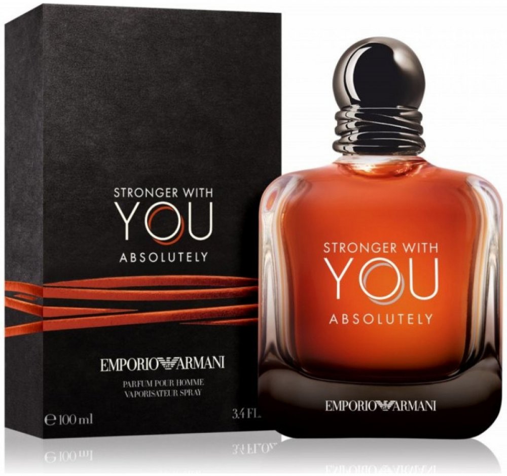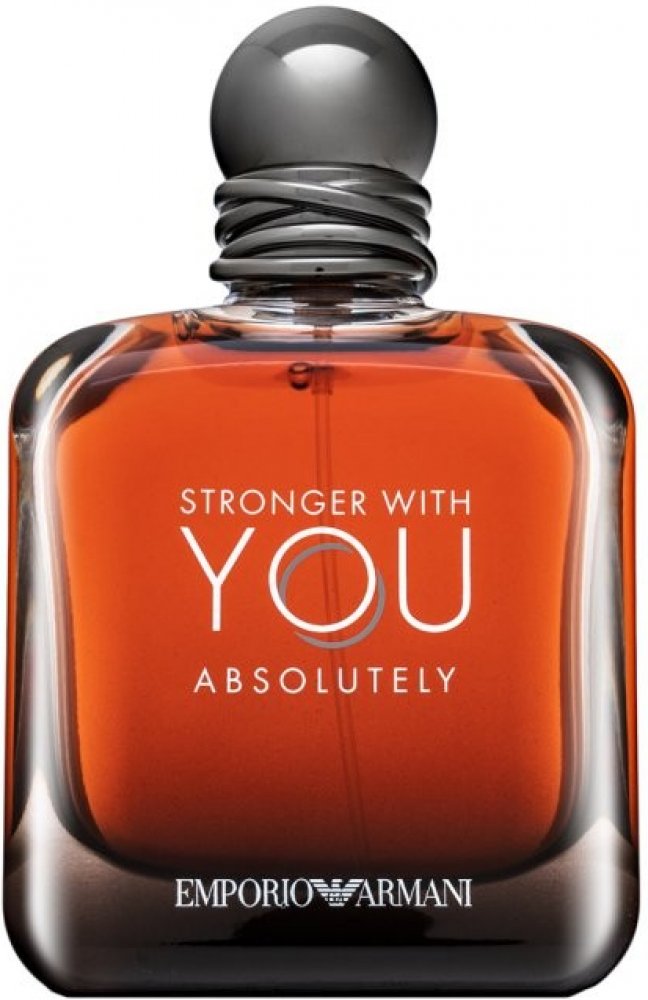 Na úspěšnou sérii Emporio Armani Stronger With You navázala vůně Stronger With You Absolutely, která získala ze všech dosud uvedených na trh tu nejintenzivnější podobu. A to nejen svým obsahem. Od předchůdců ji odlišuje i temné lakování ve spodní části flakonu a potvrzuje tím silný charakter vůně. Rumová barva, kterou získal, odkazuje k jedné z obsažených složek.
