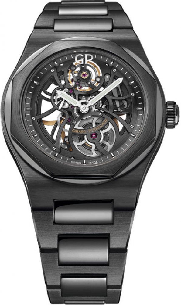 Hodinky Girard-Perregaux Laureato Skeleton Ceramic představují dokonalé spojení moderní estetiky, technické preciznosti a inovativních materiálů. Jejich 42mm pouzdro z černé keramiky vyniká saténovým i leštěným povrchem a doplňuje jej charakteristická osmihranná luneta, která podtrhuje sportovně-elegantní vzhled modelu.Pod safírovým sklíčkem se otevírá fascinující pohled na skeletonový ciferník, odhalující manufakturní kalibr GP01800-0006 s frekvencí 28 800 vib/h a rezervou chodu 54 hodin. Každý detail strojku je dokonale propracován a zdůrazňuje řemeslnou dovednost značky Girard-Perregaux.Model je doplněn integrovaným keramickým náramkem s trojitě skládanou sponou a nabízí vodotěsnost 100 m (10 bar). Laureato Skeleton Ceramic je určen pro ty, kteří hledají inovativní časoměr s výrazným charakterem a moderní elegancí.