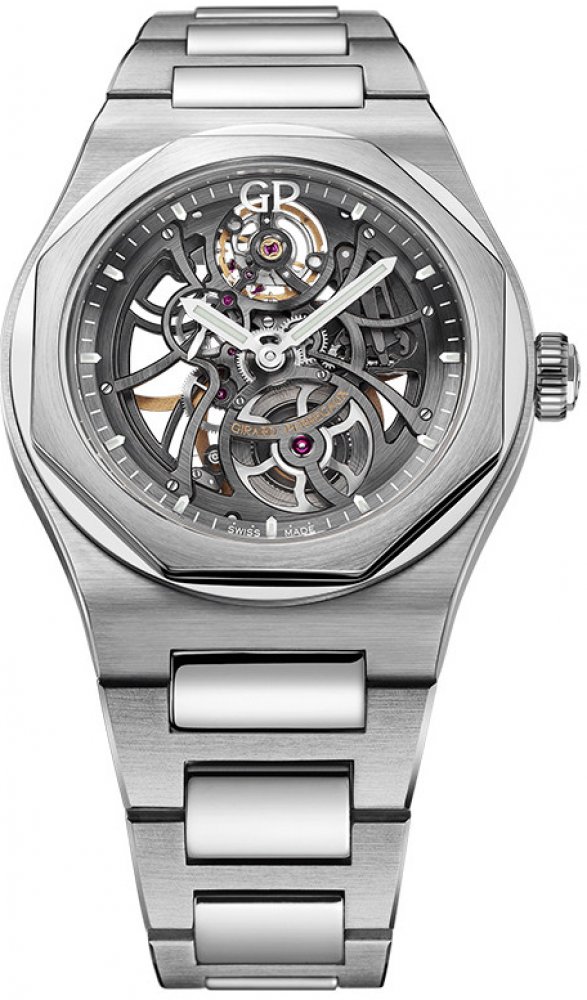 Girard-Perregaux analogové ocel ocel 100 m automatické safírové sportovní pánské automatické bez osazení Laureato osmihranné stříbrná čirá skládací spona pro potápění (100+ m) na ruku švýcarské bez číslic stříbrná ocel 4.2 cm střední pevná ocel 54 h 10.68 mm 10.68 mm 42 mm s občasnou údržbou (automatické) bez chytrých funkcí