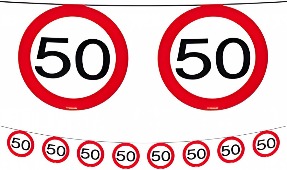 Originální a vtipná výzdoba k 50. narozeninám v designu dopravní značky. Dopravní značka je vyrobena z ohebného plastu a její průměr je 48 cm. Značka má v horní částí oko k zavěšení nebo ji můžete jednoduše pomocí lepicí pásky nalepit například na dveře.