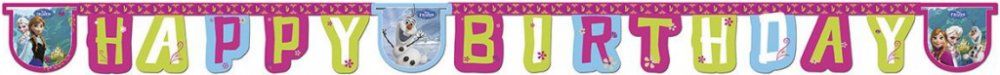 Girlanda v podobě nápisu Happy birthday s motivem z pohádky Frozen. Teto dekorace se skvěle hodí na dívčí narozeninovou oslavu. Rozměry: 180 x 15 cm.