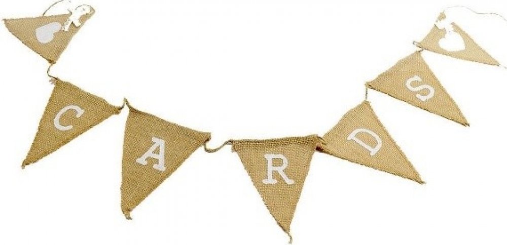 Girlanda Cards s nápisem na jutových vlaječkách