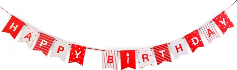 Závěsná dekorace "Happy Birthday", jak už název napovídá, je skvělým doplňkem narozeninových oslav a párty. Jednotlivá písmenka jsou natištěna na pevnějším papíře. Potisk je jednostranný. Součástí balení je šňůra, kterou provelčete dírkami na kartách. Dekoraci dodáváme rozloženou.