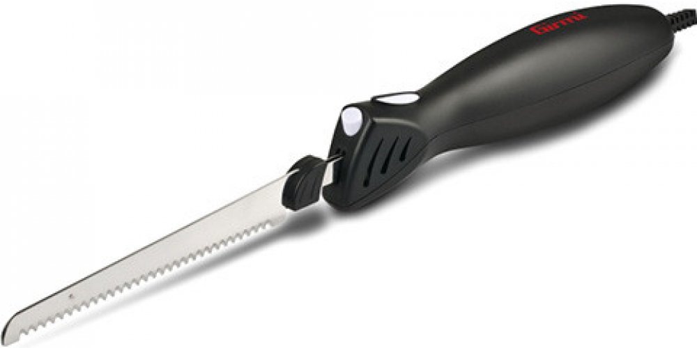 PULZNÍ provoz, DC motor,2 nástavce z nerezové oceli, vhodný na chleba, vhodný na maso, pečené a mražené potraviny, nože s chrániči prstů, ergonomická rukojeť, 45 W