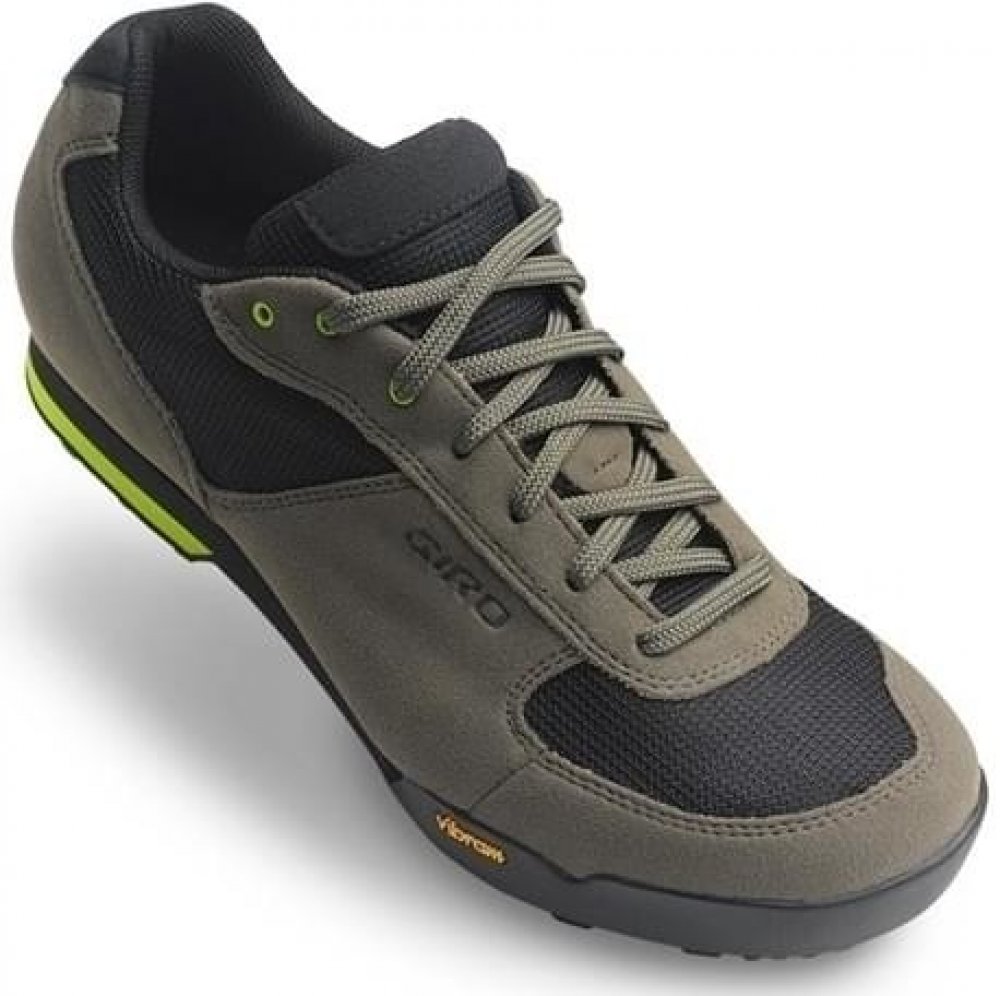 Univerzální turistické tretry Giro Rumble VR v decentním designu s vibramovou podrážkou vhodné i k nenáročnému chození, kompatibilní s normálními i SPD nášlapnými pedály. Turistické tretry Giro Rumble VR Mil Spec Olive/Black