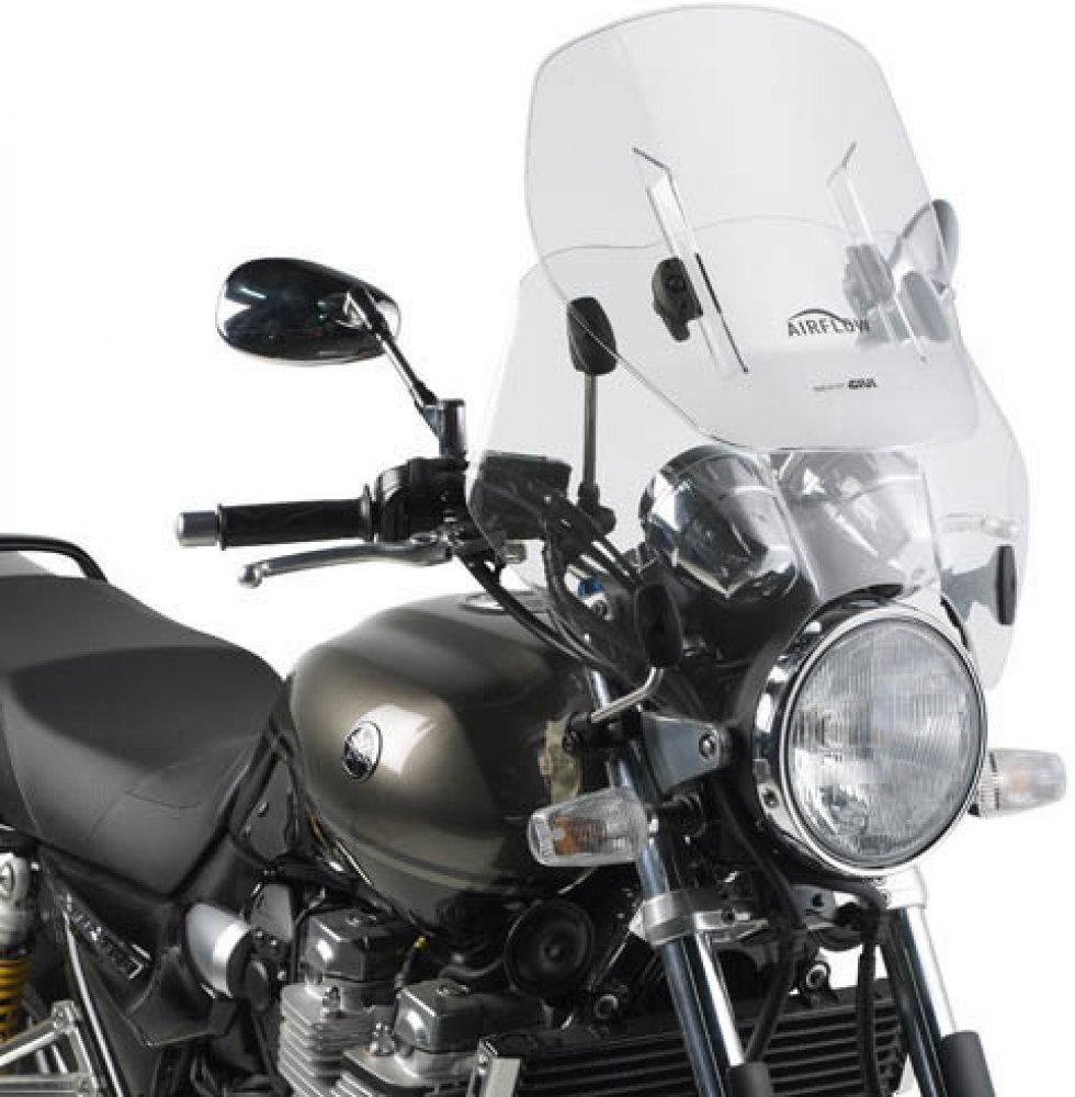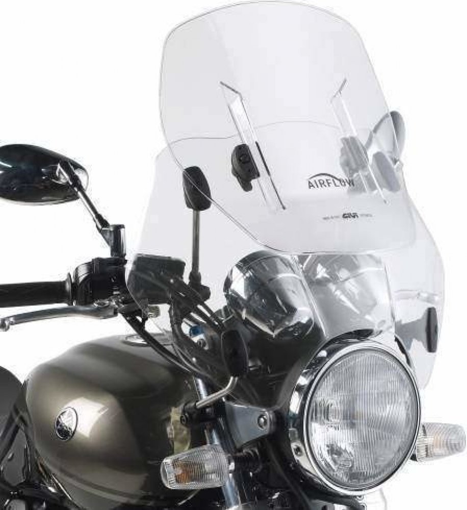 Univerzální stavitelné plexi GIVI AIRFLOW AF49 s montážní sadou na řidítka a vidlici motocyklu, čiré Výškově stavitelné, v rozsahu 120 mm, univerzální plexi GIVI AIRFLOW AF 49 s montážní sadou na moto, čiré. Sada dvou plexi se spojovacími prvky a montážní sadou pro uchycení na řidítka a vidlici motocyklu (čtyřbodová montážní sady na řídítka (2 úchyty) a na vidlici (2 úchyty). Rozměry: A (výška) = ...