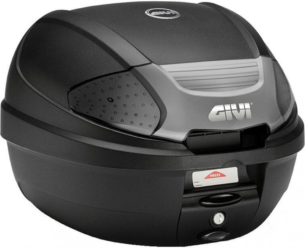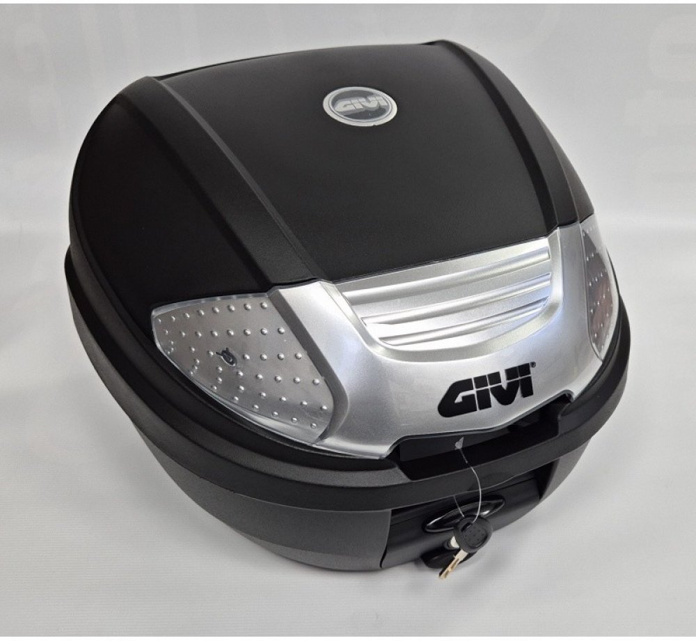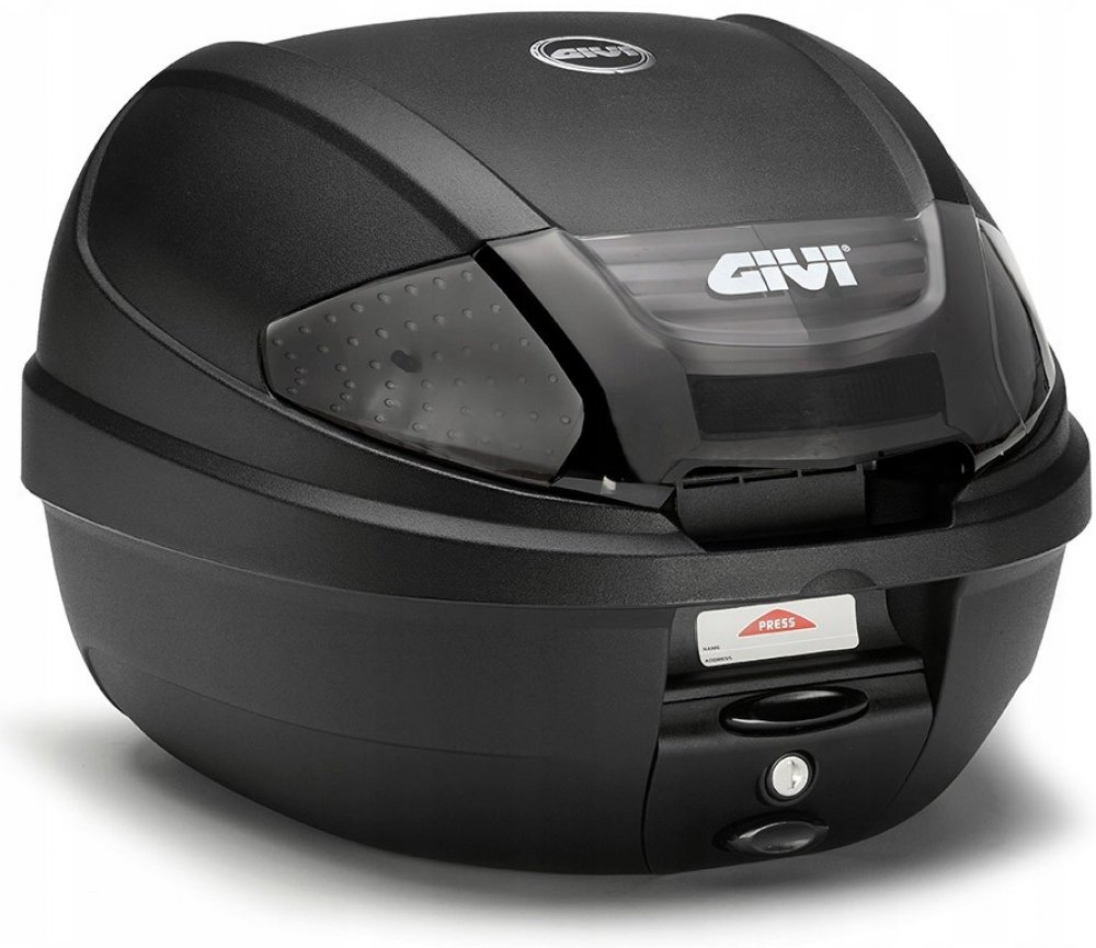 Kufry řady MONOLOCK s vlastní plotnou (součástí balení). Objem 30 litrů, rozměry šxvxh = 400x300x410 mm (z čelního pohledu), nosnost 3 kg, pro 1 přilbu - lze použít pouze jako horní kufr - lze doobjednat opěrku E 103, brzdové světlo E 104, lakovaný kryt horního víka C 340, horní zahrádka na víko se nedodává. Provedení s čirými odrazkami = TECH. Plotna dodaná s kufrem slouží k uchycení na stávající nosič motocyklu (skútry, endura). Pokud motorka nosič nemá, je nutné objednat nosič MONORACK, který sestává z montážní sady ...F a plotny MM, nebo sady ...FZ a plotny M5M. Tato modifikace kufru E 300 je vybavena otevíracím mechanismem s tlačítkem, stejně jako kufry řady Monolock vyšší řady.