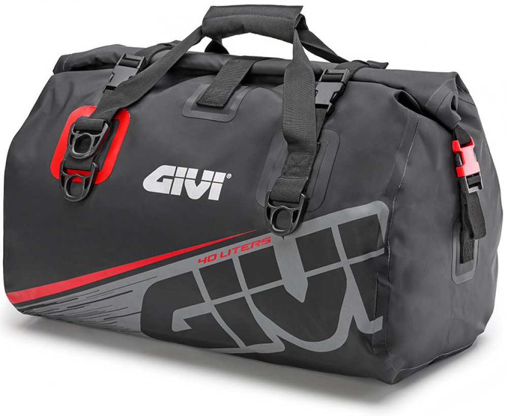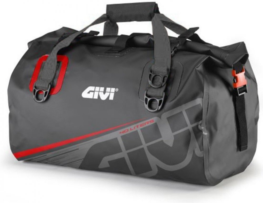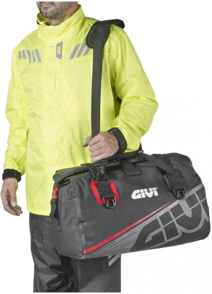 Voděodolné zavazadlo s rolovacím uzávěrem Givi EA115GRSpecifikace: Materiál: PVC plachtovina - vysokofrekvenčně svařovaná (bezešvá) Vyrobeno v souladu s nařízením EU (Reach regulations) Materiály odolné proti UV záření, v souladu s ISO 4892-2: 3013 Rolovací uzávěr IPx5 Objem 40 litrů Vybaveno popruhem přes rameno Upínací elastické popruhy Rozměry 540x300x300 mm Barva šedá s červenými doplňky ze základní řady EA "Easy-T" originální stránky Givi