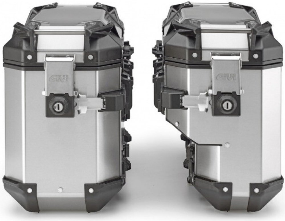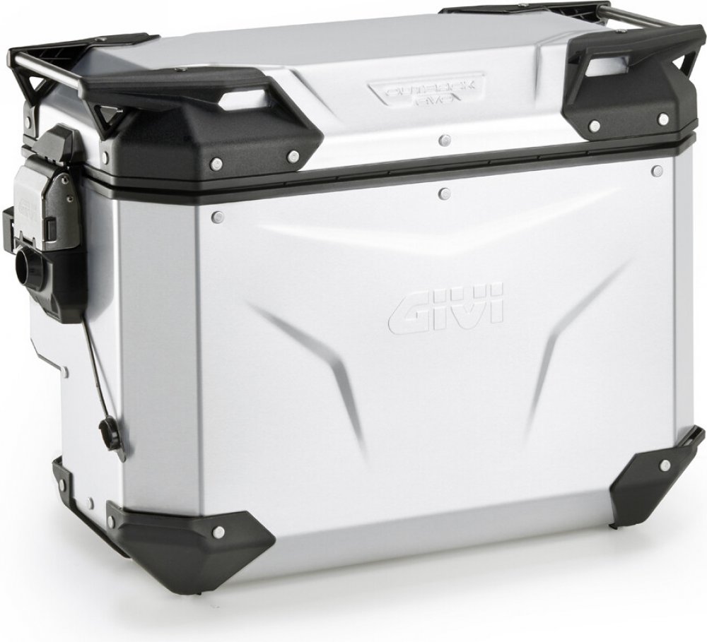 GIVI Trekker Outback EVO SMART = KUFR JE DODÁVÁN BEZ ZÁMKU. Kufr pravý boční celohliníkový stříbrný anodizovaný (eloxovaný - povrchová úprava, která chrání proti otěru a oxidaci) s nahoru otevíracím víkem, s vybráním na výfuk motocyklu, objem 40 litrů, rozměry šxvxh = 557x393x306 mm (z čelního pohledu), nosnost 10 kg. Lze použít jako boční kufr - nutno použít speciální trubkové nosiče pro kufry Monokey (PL....CAM - trubka 18 mm). Pro kombinaci s levým bočním kufrem OBKEV44AAL pro symetrické osazení motocyklu kufry. Nový model Outback EVO SMART. Systém jednoho klíče, bezpečnostní klíč provedení Smart Security Lock SLR. K dispozici od 7/2024, dodáván bez zámku. Zámek k dokoupení SLR101 (jeden zámek), SLR102 (sada stejných 2 zámků), SLR103 (sada 3 stejných zámků), SLR105 (sada 5 stejných zámků). Tyto nové zámky lze snadno vyměnit a nabízí nově možnost otevírat víko kufru bez klíče zastrčeného v zámku. Nově jsou k dispozici 4 polohy klíče: Trojúhelník = nasazení vložky s klíčem do kufru. Kroužek = zamčené víko, kufr nelze sundat, klíč lze vytáhnout. I = otevření víka bez klíče, kufr nelze sundat, klíč lze vytáhnout. II = víko lze otevřít, kufr lze sundat, klíč nelze vytáhnout.