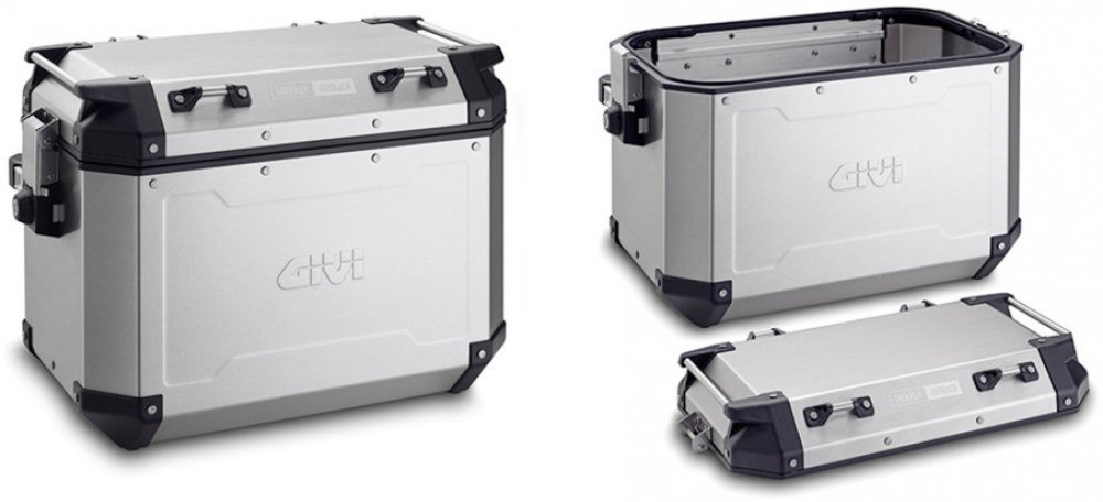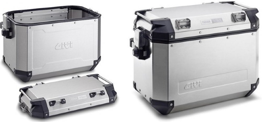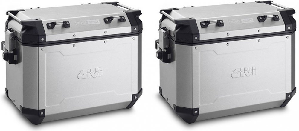 OBKN 48APACK2 pravý + levý kufr GIVI Trekker Outback stříbrný hliníkový (Monokey boční), objem 2x48 ltr.