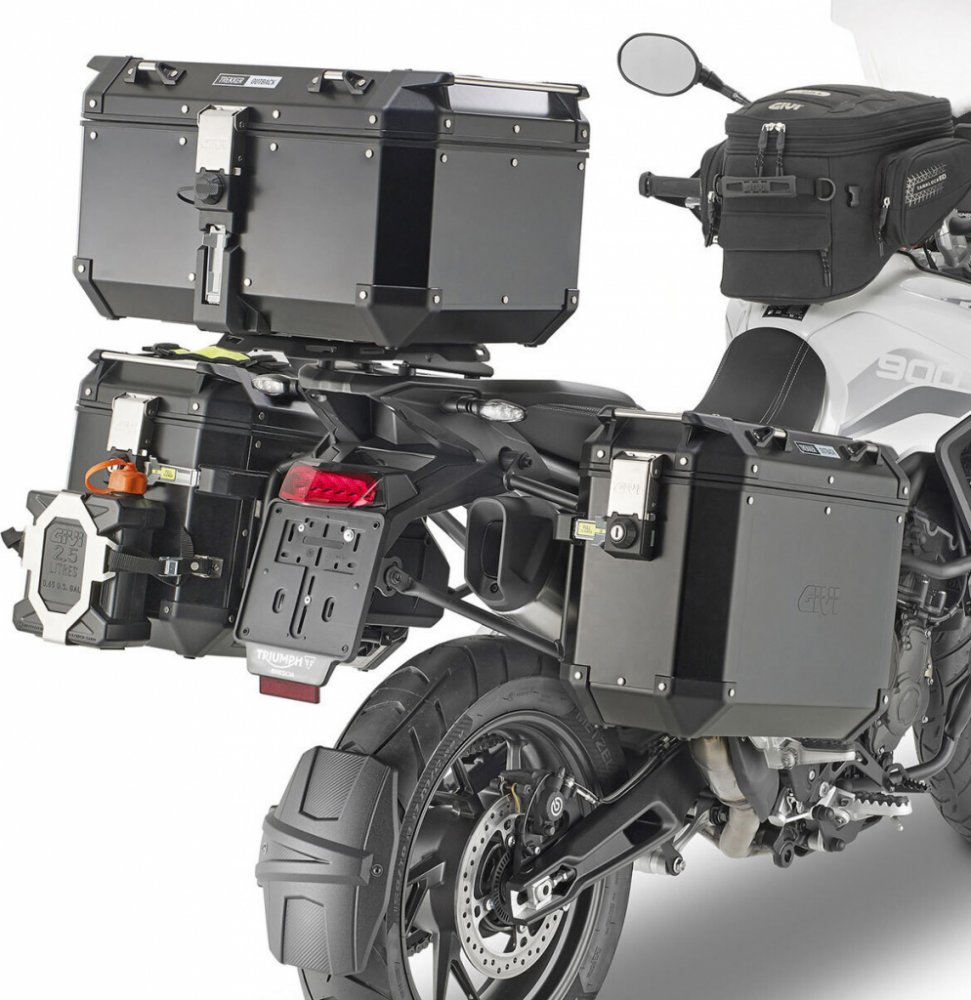Nosič bočních kufrů GIVI PLO6425CAM je modelově specifický trubkový rám (řada PL ONE-FIT) určený pro montáž hliníkových bočních kufrů systému MONOKEY® CAM-SIDE na motocykl Triumph Tiger 900 (modelové roky 2020-2025, konkrétně od roku 2024-25). Rám má průměr trubky 18 mm, poskytuje velmi stabilní uchycení kufrů pomocí čtyřprvkového systému držení. Kufry nejsou součástí balení — je třeba dokoupit samostatně (např. řady OBK/EV Trekker Outback v provedení CAM-SIDE). Možnost rozšíření: Lze kombinovat s transformační sadou 01RKIT pro změnu rámu na rychloupínací (Rapid Release) provedení