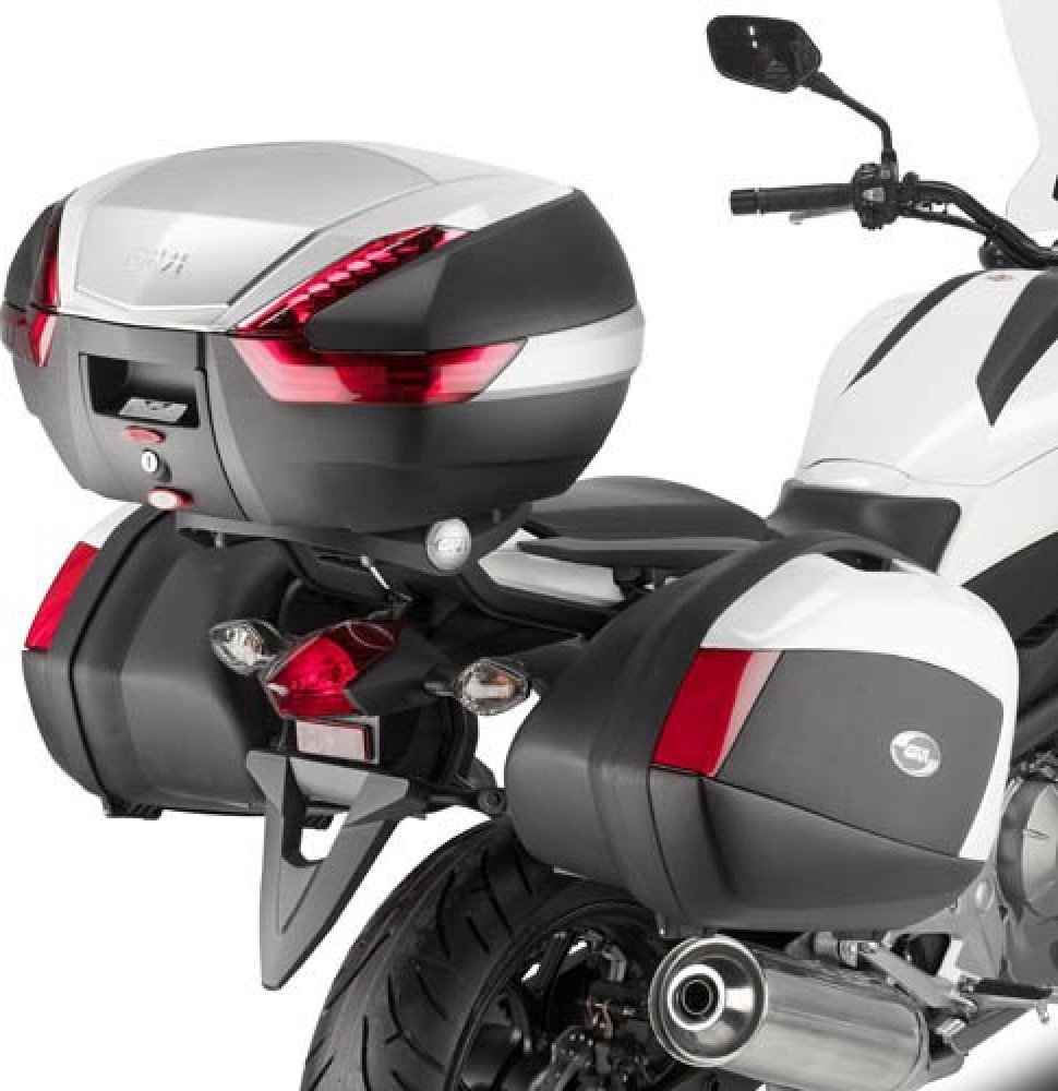 Trubkový nosič pro boční kufry. PLX - trubkový nosič bočních kufrů, speciálně vyvinutý pro použití pouze kufrů V 35. Má pětiprvkové uchycení kufru k nosiči, je velmi stabilní, konstrukce je posunuta co nejblíže motocyklu. Montáž bez držáku topcase 1111FZ je možná při použití 1111KIT.