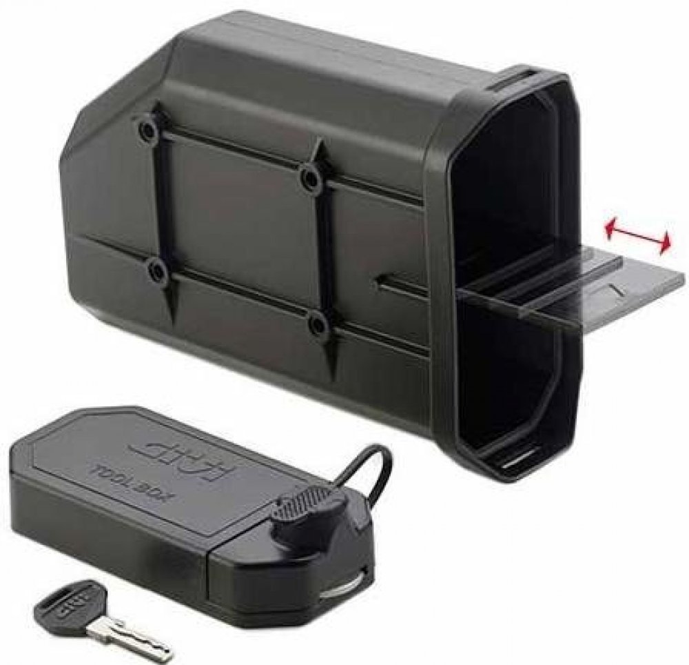 Plastová schránka na nářadí do trubkových nosičů GIVI řady PL..., PLR..., PL...CAM. Rozměry 260x90x170 mm. Uzamykatelná klíčem GIVI řady SL... Pro montáž do trubkového nosiče bočních kufrů použijte montážní sadu TL...KIT specifickou dle modelu motocyklu (viz MOJE MOTO), případně univerzální sadu S 250KIT. Pokud chcete sjednotit klíče kufrů a schránky, doporučujeme sadu 5 zámků SL105 - kupte samost...