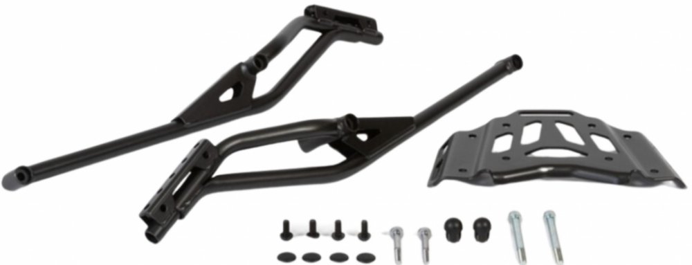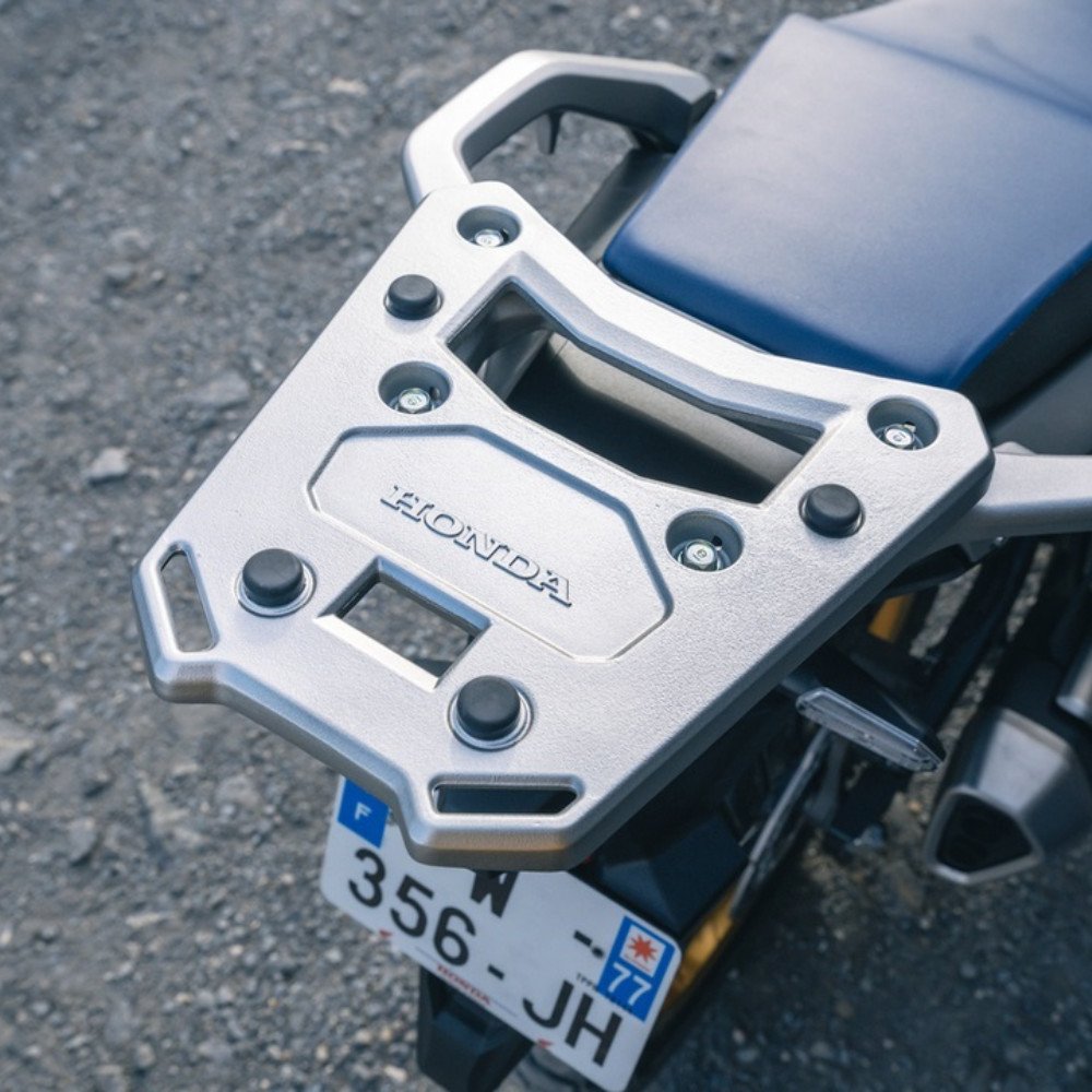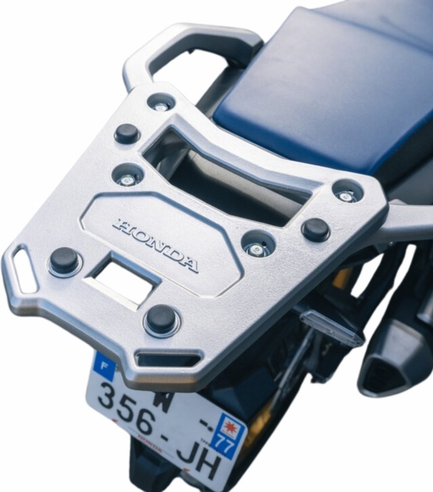 Zadní nosič ve stříbrné barvě (NH460M) s úchyty, které zlepšují pohodlí cestujících a usnadňují ovládání motocyklu. Vhodné pro všechny velikosti horních boxů.