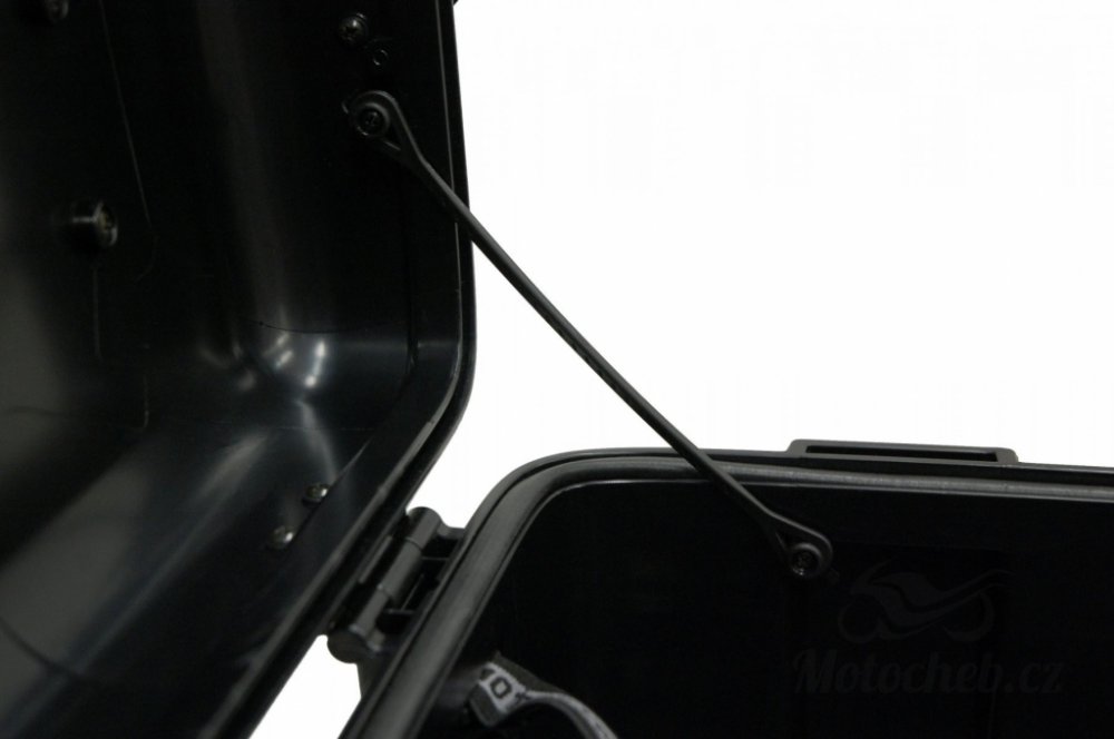 - Je praktickým řešením pro ty, kdo vlastní motocykl vybavený vysoko postranním koncovým výfukem: namontovaný na straně tlumiče v kombinaci s větší 46litrovou verzí řeší problém asymetrického bočního objemu. pár tradičních kufrů