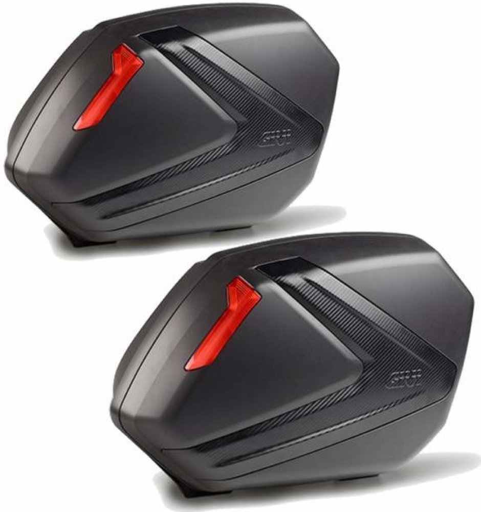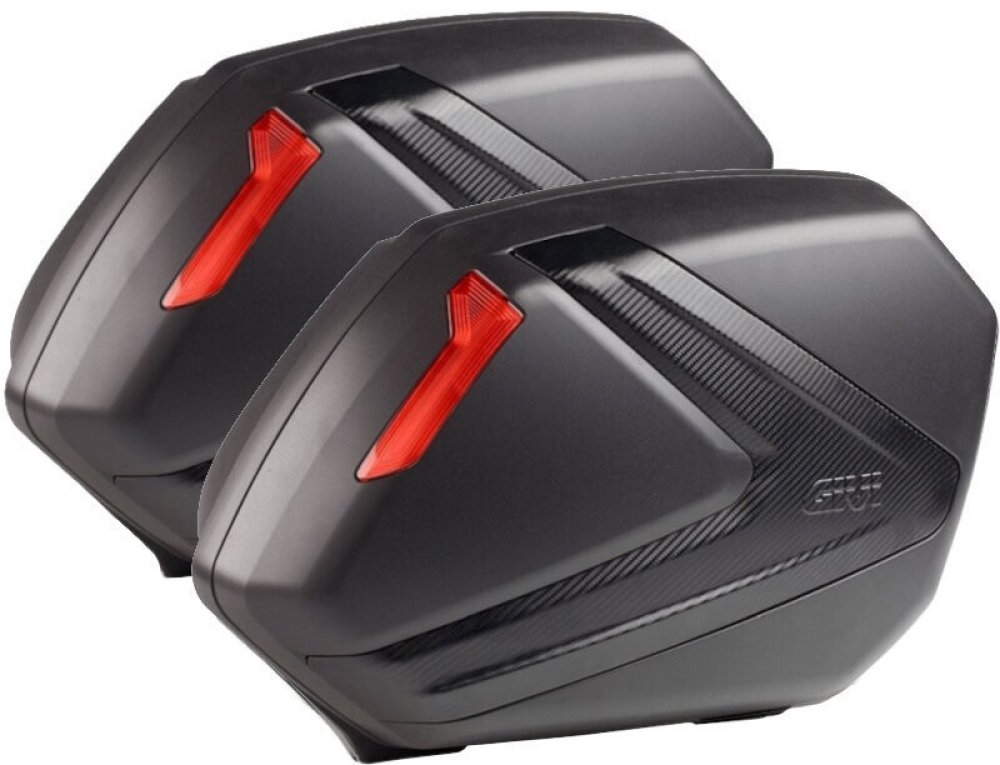 Boční kufry GIVI, určené výhradně pro montáž na trubkový nosič PLX... Kufr je velice stabilní, má pětiprvkové upínání, díky moderní kompaktní stavbě je při montáži dosaženo co nejmenší šířky motocyklu s kufry. Každý kufr má objem 37 litrů. Kufr pojme integrální přilbu. Provedení s červenými odrazkami, černým víkem s černým šípem v imitaci karbonu. Součástí dodávky je samostatný třetí zámek se shodným klíčem - použijte jej, pokud chcete tyto boční kufry sjednotit s kufrem horním.