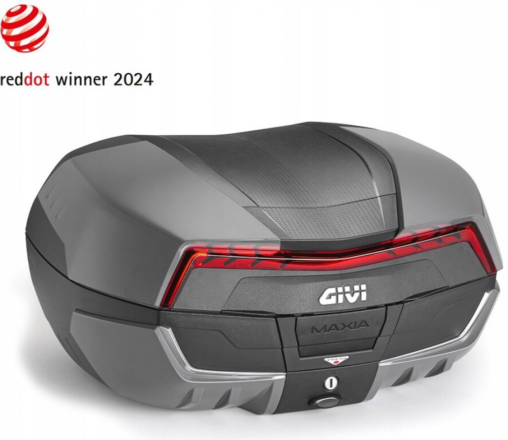 Další generace nejnovějšího a největšího plastového kufr od GIVI, model 2024. Kufr V 58 Maxia 5 je největším kufrem v nabídce, pojme 2 integrální přilby a jeho objem je 58 litrů, nosnost 10 kg. Rozměry výška 321 mm x šířka 598 mm x hloubka 494 mm (z pohledu umístění na horním nosiči). Modely V58N a V58NT jsou stříbrně lakovány. Tento kufr nabízí mnoho kvalitních technických řešení a bezkonkurenční prostor pro náklad.