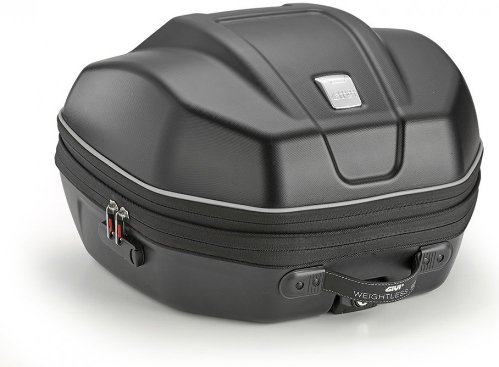 Nový polotuhý kufr/textilní zavazadlo osazené úchytným systémem MONOKEY - pasuje na všechny plotny Monokey (E251, M5, M7, M8, M9, SR, SRA). Lze uzamknout k nosiči pomocí bezpečnostního zámku, otevírání a rozšiřování zavazadla zipem. V rozšířeném stavu pojme integrální přilbu. Vyrobeno z plastu ABS tvářením za tepla. Díky své konstrukci si zachovává tvar, ale je velmi lehký. Kombinovatelný s párem bočních brašen WL 900, které jsou také vybaveny systémem upínání MONOKEY a pasují tak do bočních GIVI nosičů PL, PLR, PLO (nelze do nosičů PLX... a PL...CAM).