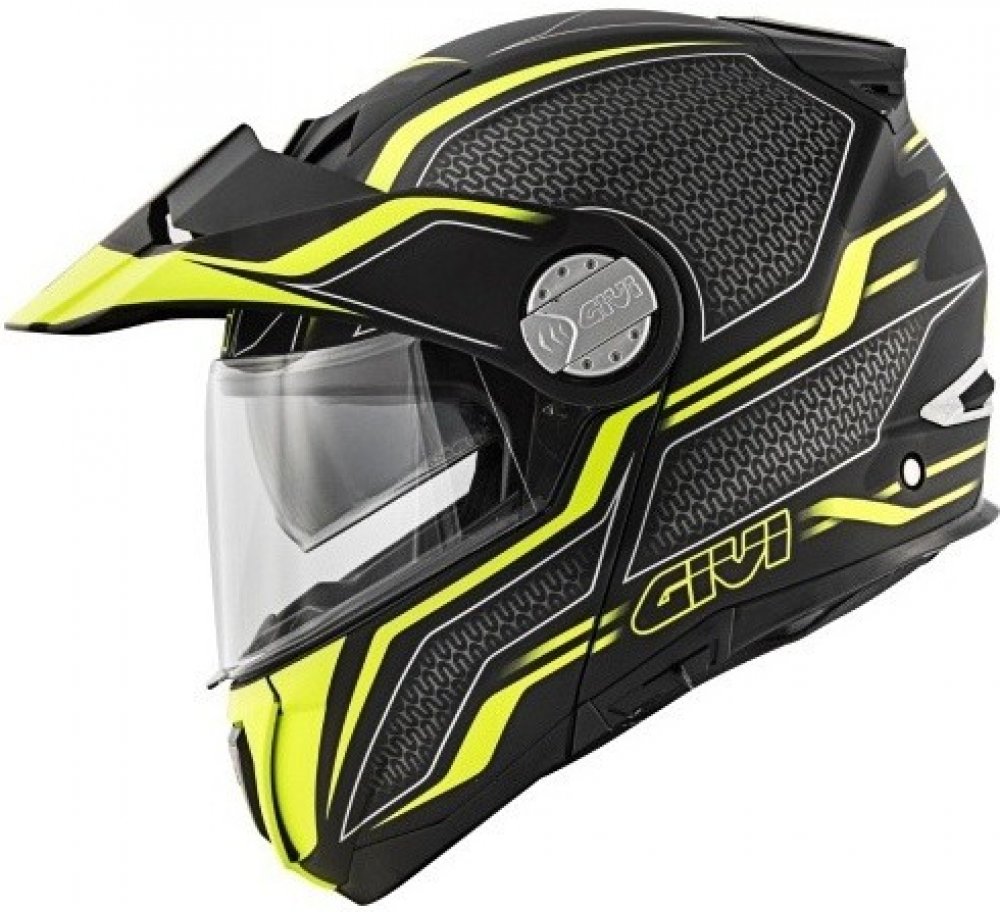 Integrální přilba s kšiltem X.33 CANYON LAYERS LYBY žlutá výklopná enduro přilba GIVI, Přilba je homologována P/J jako integrální i jako Jet.