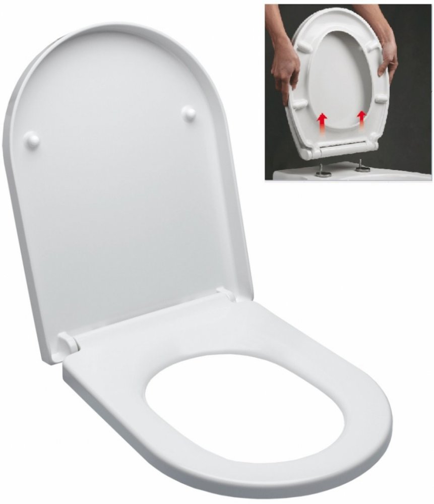 Univerzální sedátko vyrobené z duroplastu se systémem EASY LOCK - systém, kde se připevní speciální univerzálně nastavitelné trny pomocí šroubů k WC míse a na ně se nacvakne sedátko. Pro demontáž stačí sedátko pomocí tlačítek vycvaknout, sejmout a opět nasadit.