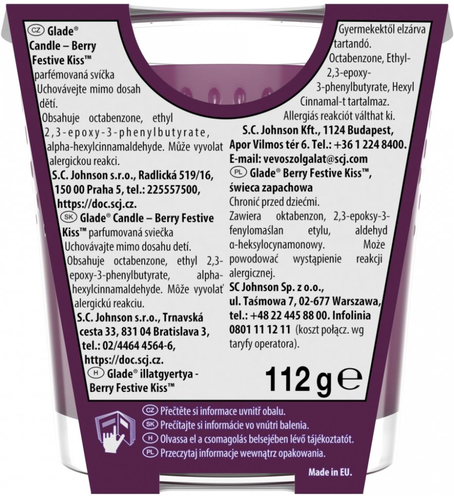 Shrnutí výhod produktu Glade svíčka vonná Berry Festive Kiss, 112 g