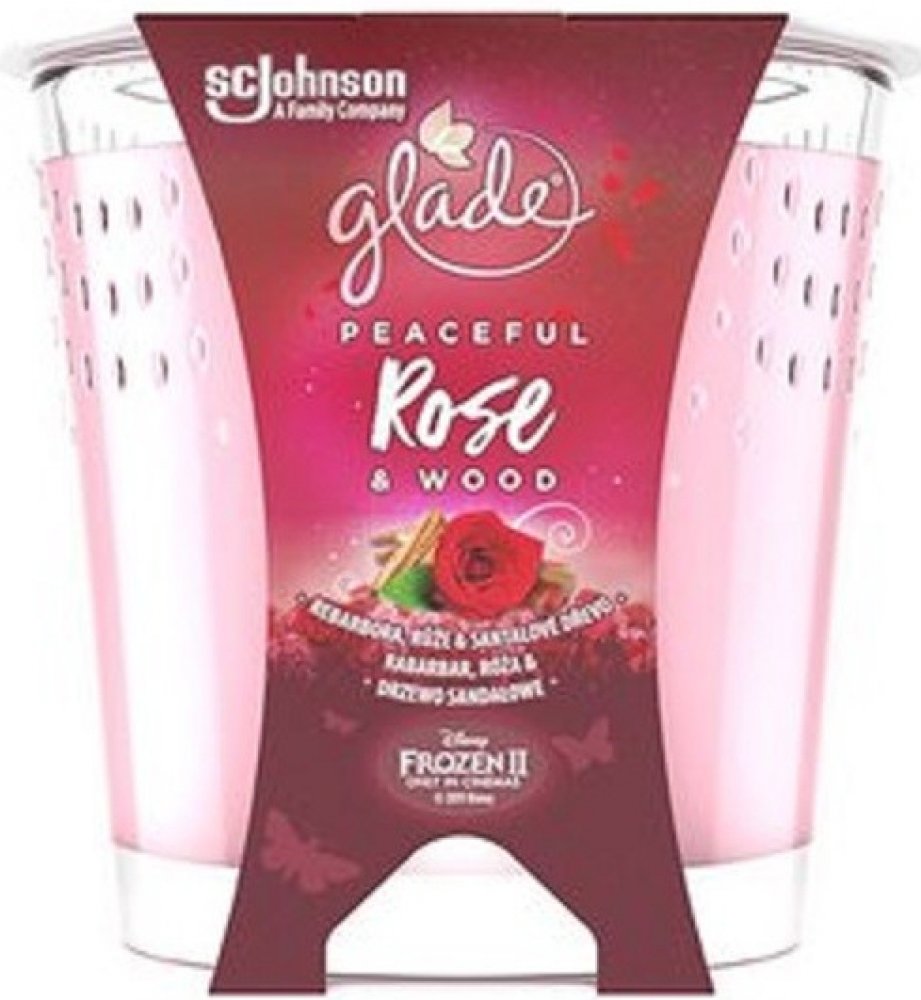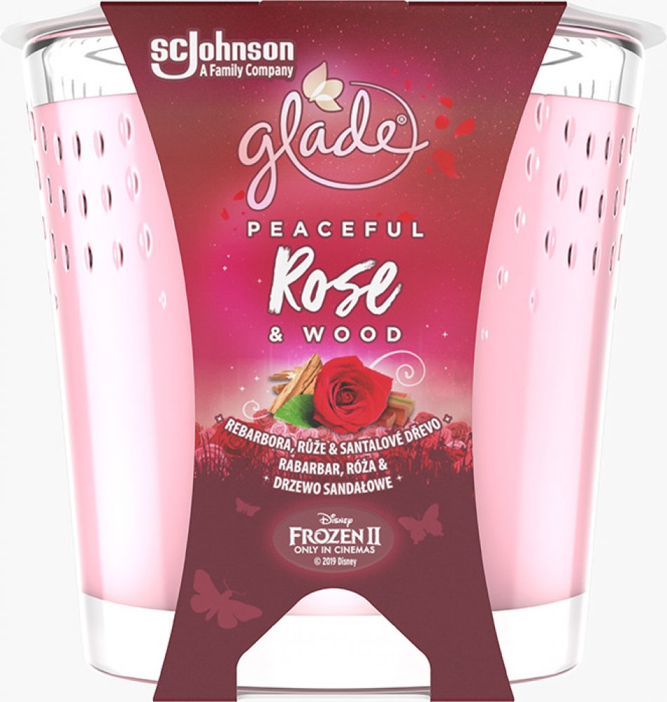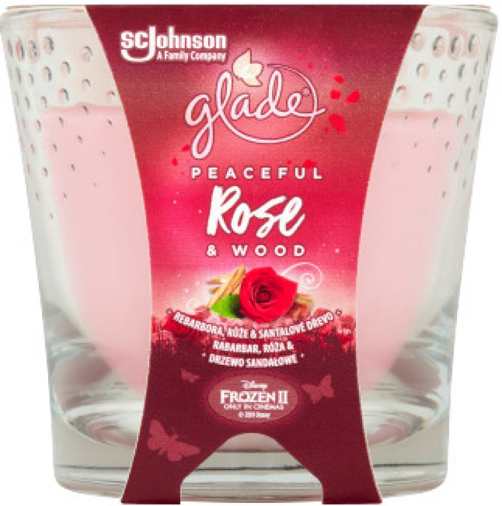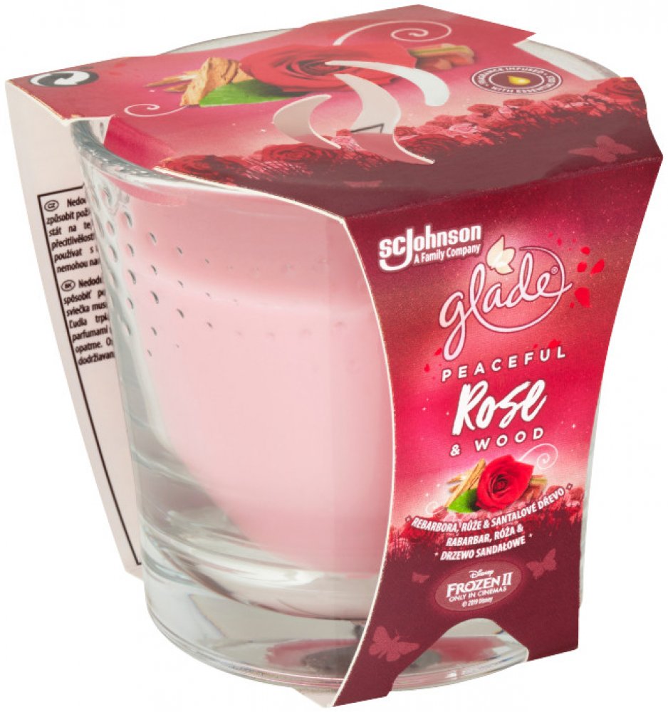 Glade® Candle - Peaceful Rose & Wood - rebarbora, růže & santalové dřevo, parfémovaná svíčka