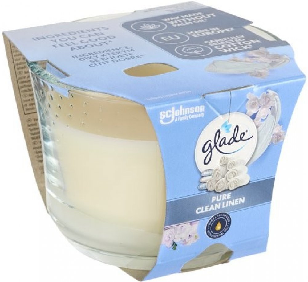 Vneste do svého domova pocit dokonale čistého prádla s parfémovanou svíčkou Glade Clean Linen. Svěží, lehká a čistá vůně připomínající právě vyprané ložní prádlo navodí klidnou a harmonickou atmosféru v každé místnosti. Díky obsahu esenciálních olejů se aroma uvolňuje jemně a rovnoměrně, takže si svěžest užijete po dlouhou dobu.