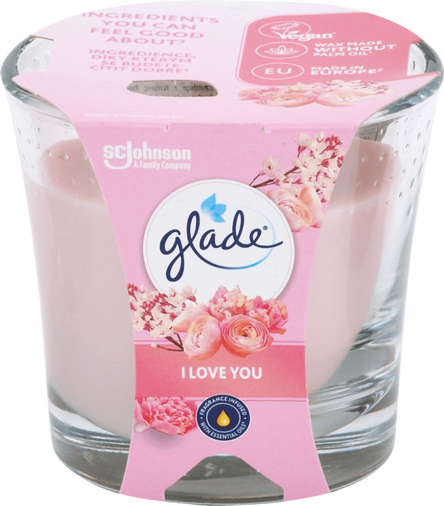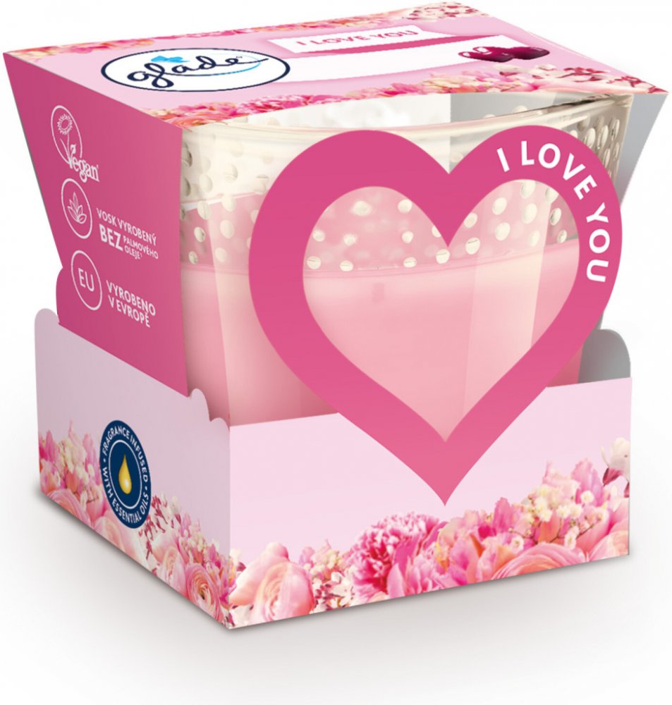 Shrnutí výhod produktu Glade svíčka vonná I Love You, 112 g