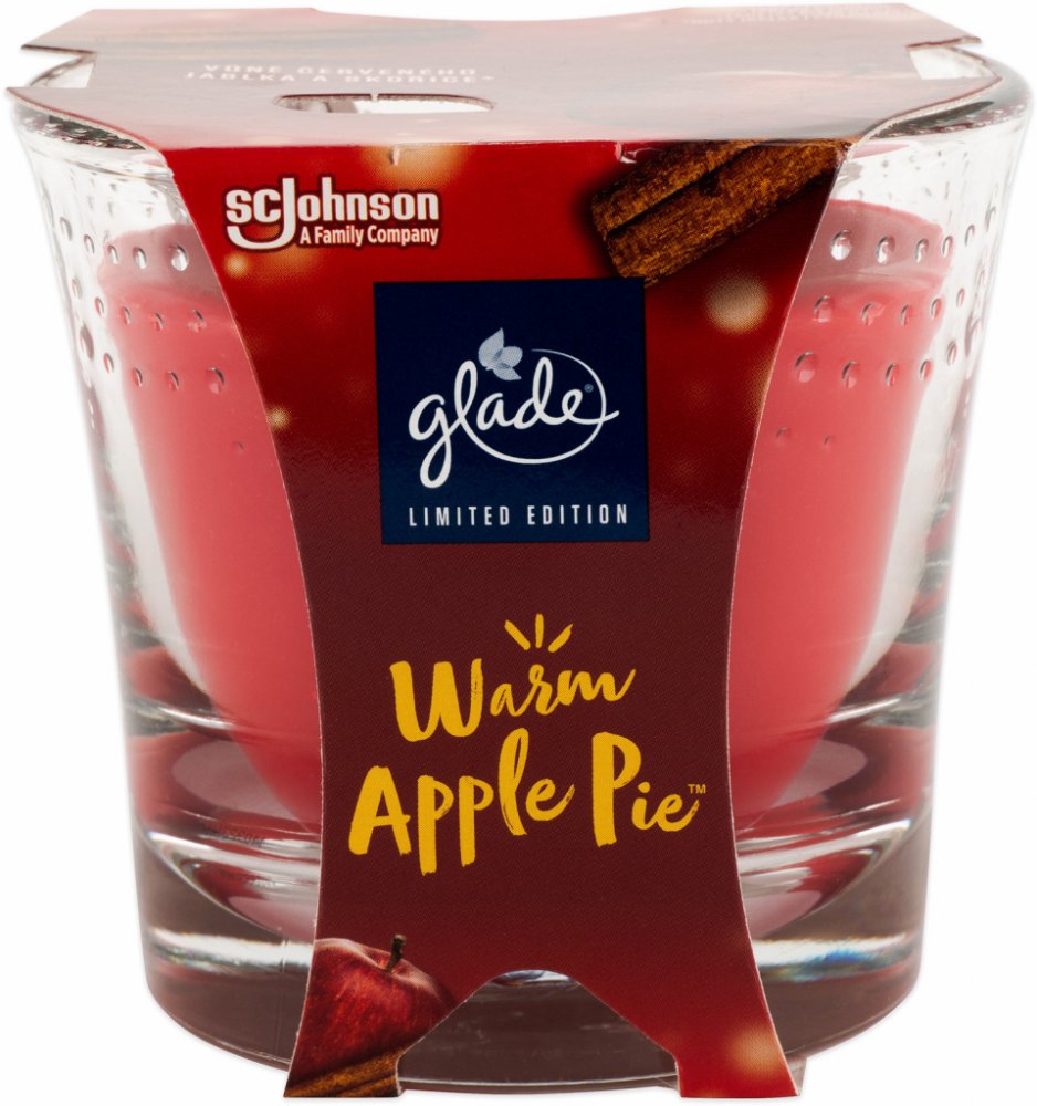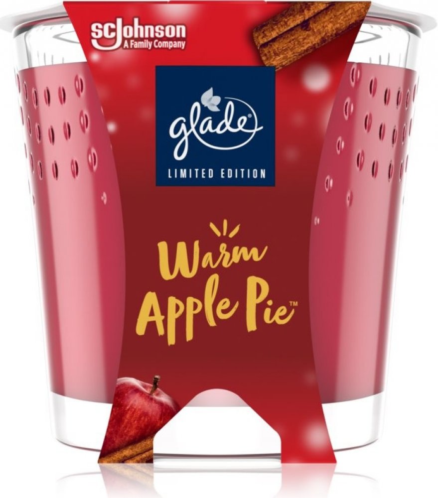 Vonná svíčka GLADE Warm Apple Pie přináší vůni červeného jablka a skořice, která okamžitě navodí hřejivou zimní atmosféru. Svíčka o hmotnosti 129 g je uložena v dekorativní skleněné nádobě, která nejen chrání plamen, ale také zpříjemní vzhled interiéru. Díky době hoření až 38 hodin si můžete užívat dlouhotrvající vůni, která provoní domov a podtrhne sváteční chvíle. Tato svíčka je ideální pro chvilky odpočinku i jako vkusný dárek.