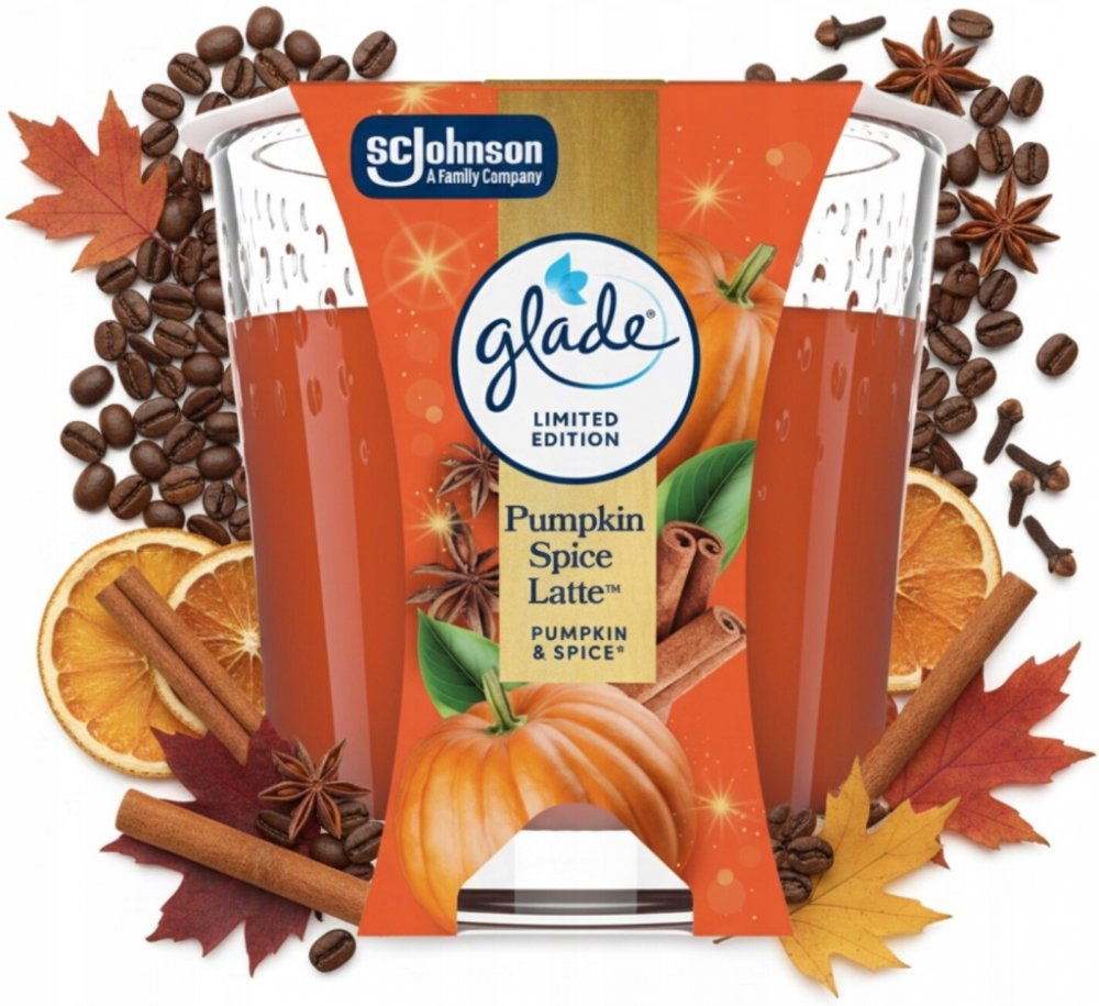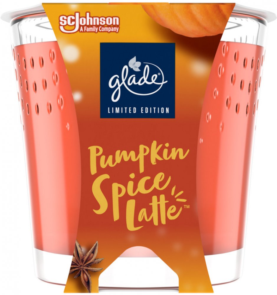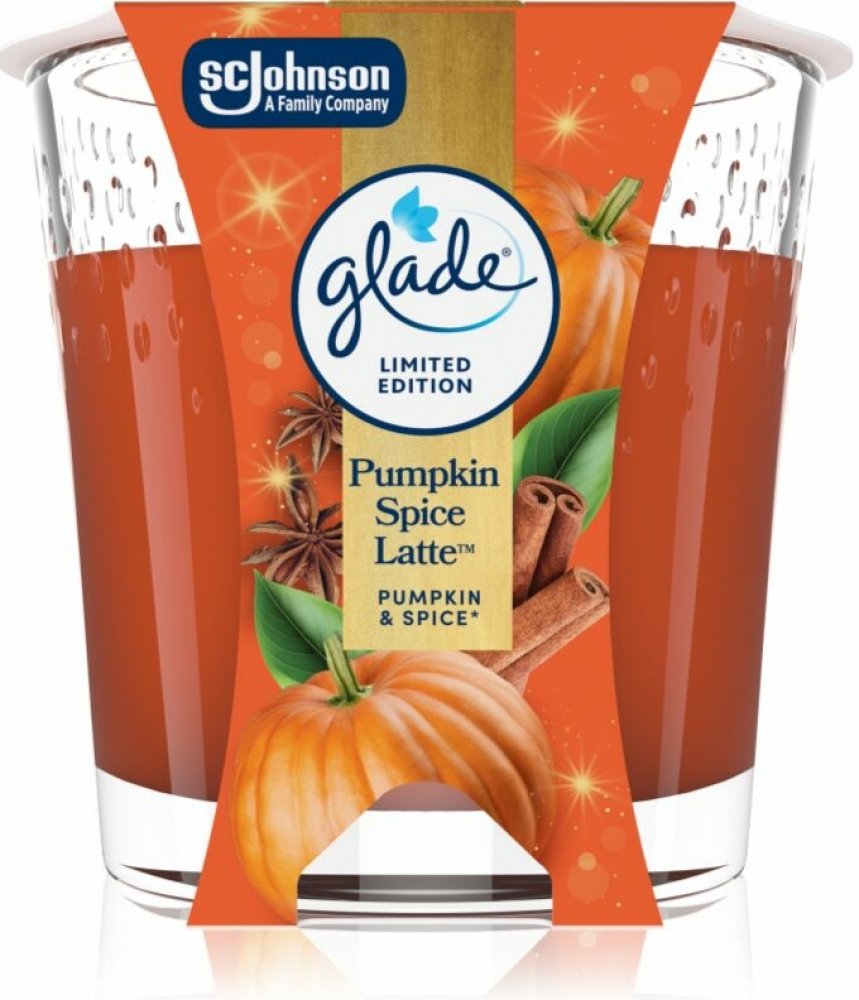 Aromatická svíčka Glade s vůní kořeněného dýňového latté. Obsahuje esenciální oleje, které vytvoří v každé domácnosti jedinečnou atmosféru odpočinku a uvolnění. Masivní sklenička poslouží i jako vkusná dekorace.