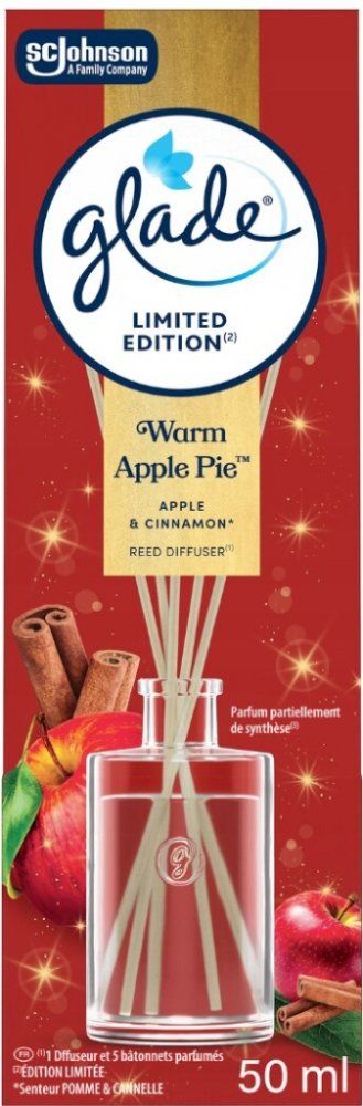 Vonné tyčinky Warm Apple Pie od značky Glade přinášejí vůni připomínající právě upečený jablečný koláč – sladké, kořeněné a s pocitem útulného domova. Je to omezená edice, která propojuje ovocné tóny s teplým, kořeněným aroma, ideální pro podzimní i zimní období.