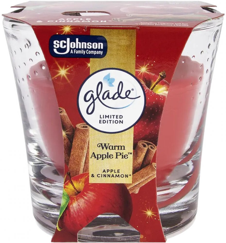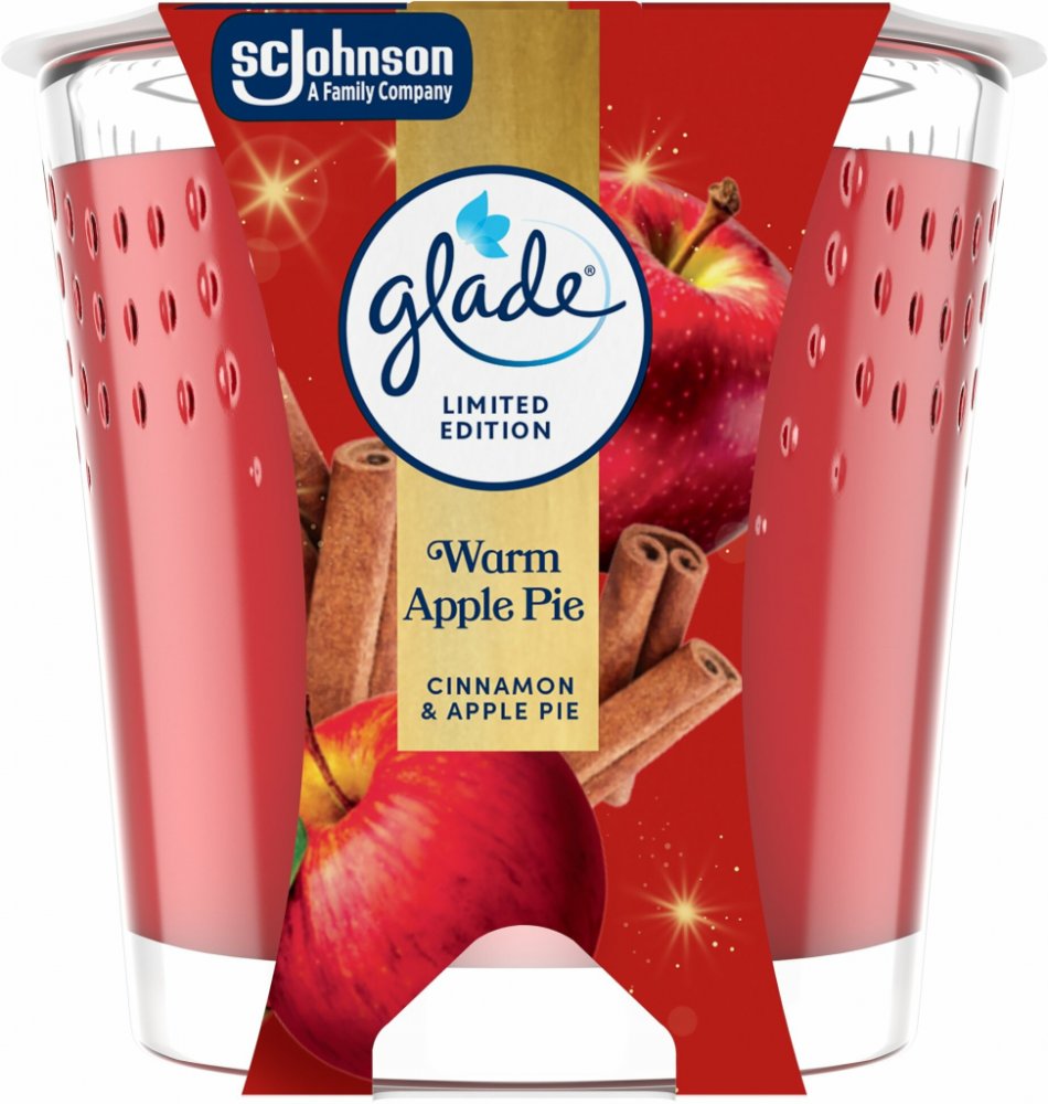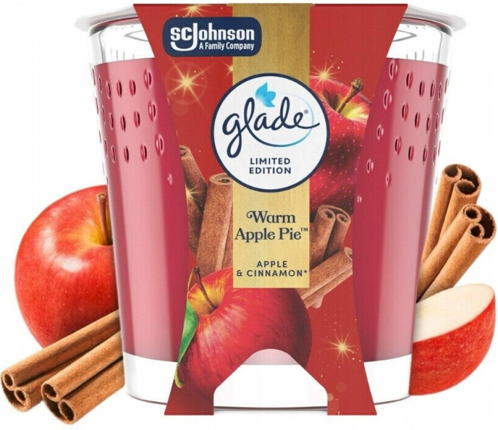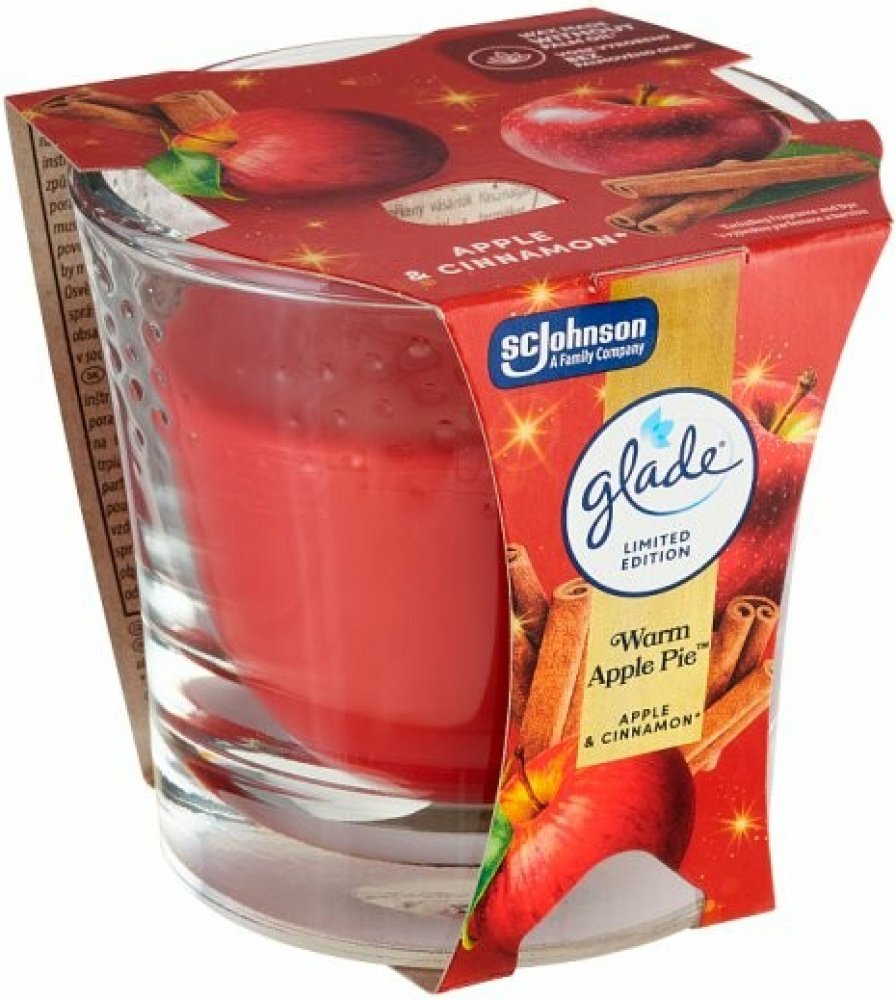 Aromatická svíčka Glade vůně červeného jablka a skořice. Obsahuje esenciální oleje, které vytvoří v každé domácnosti jedinečnou atmosféru odpočinku a uvolnění. Masivní sklenička poslouží i jako vkusná dekorace.