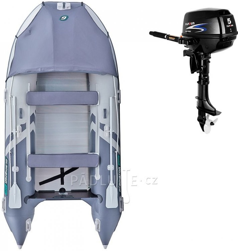 Prostorný nafukovací člun s robustní konstrukcí s hliníkovou podlahou a nafukovacím kýlem. Uveze až 5 osob, takže je ideální pro rodinnou rekreaci, pro rybáře a díky silnější motorizaci až do 30 HP se hodí i na vodní sporty. Gladiator C370 navíc disponuje luxusní výbavou jako je příďový stan s úložný vakem nebo měkkými sedáky na lavičky a dalším příslušenstvím.