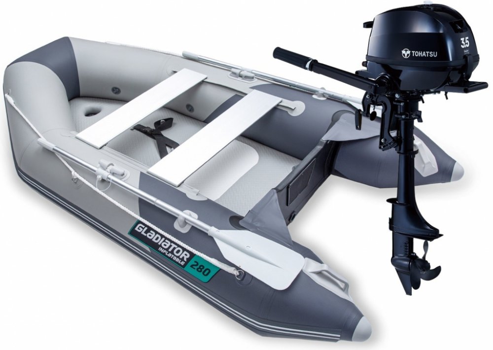 Kompaktní nafukovací člun Gladiator AK280 AD s vysokotlakou nafukovací podlážkou a nafukovacím kýlem v cenově zvýhodněném kompletu s japonským lodním motorem Tohatsu MFS3,5C S se zabudovanou palivovou nádrží o objemu 1 litr. Ideální volba jako tendr k velkým lodím, pro kratší vyjížďky ve 2 nebo pro přepravu příslušenství.
