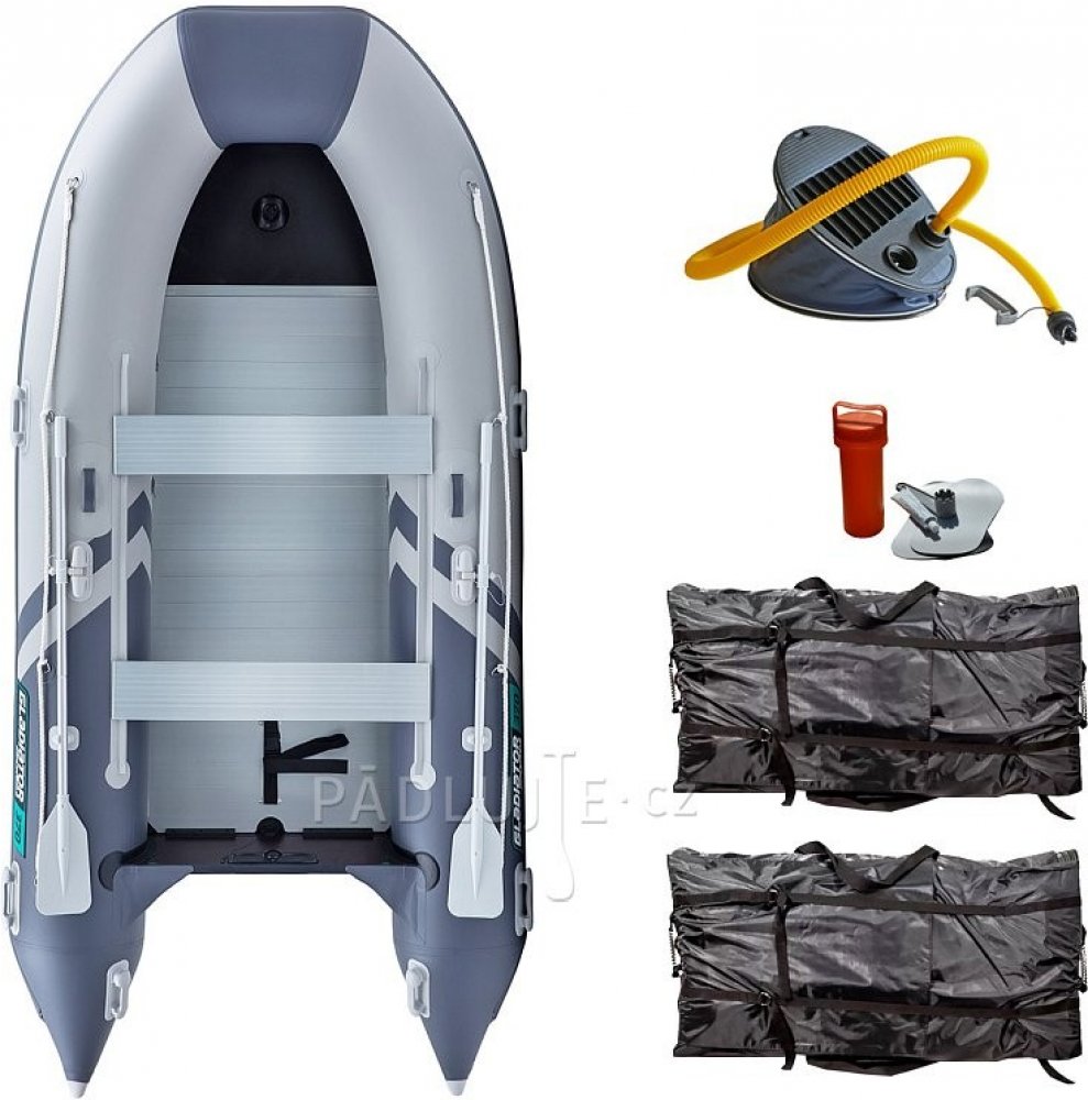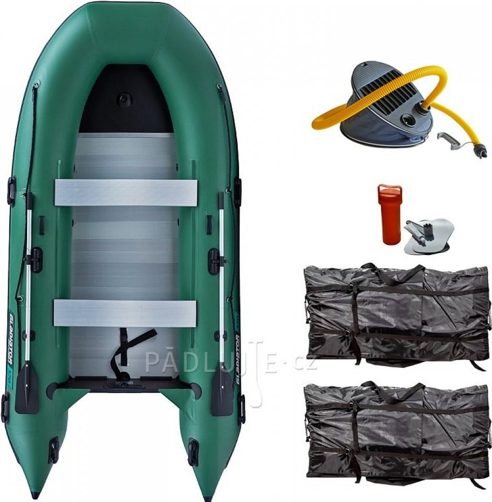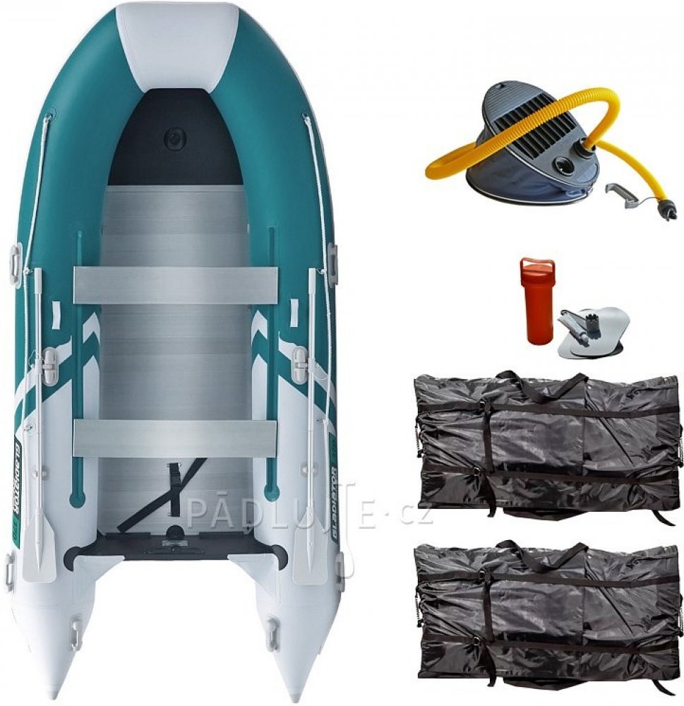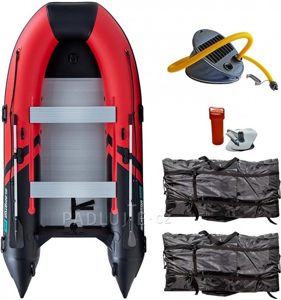Nafukovací člun vybavený skládací hliníkovou podlahou a nafukovacím kýlem do tvaru V, disponuje lepšími jízdními vlastnostmi ve vlnách než člun s nafukovací podlahou, ale je o něco těžší. Pevnější a robustnější konstrukce společně s prostornější přídí do tvaru D umožňuje u tohoto modelu přepravu až 6 osob. Kompaktní a především prostorný člun vhodný pro rodinné výlety, rybaření a...