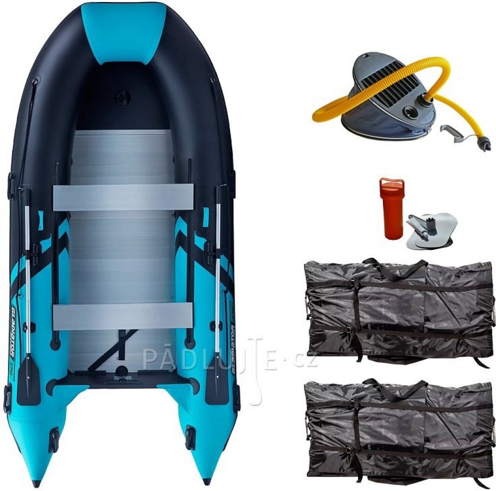 Nafukovací člun vybavený skládací hliníkovou podlahou a nafukovacím kýlem do tvaru V, disponuje lepšími jízdními vlastnostmi ve vlnách než člun s nafukovací podlahou, ale je o něco těžší. Pevnější a robustnější konstrukce společně s prostornější přídí do tvaru D umožňuje u tohoto modelu přepravu až 6 osob. Kompaktní a především prostorný člun vhodný pro rodinné výlety, rybaření a další aktivity na vodě. Při správném postupu montáže jeho příprava nezabere více jak 15 minut a snadno ho zbalíte do kufru osobního automobilu.