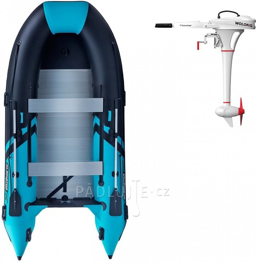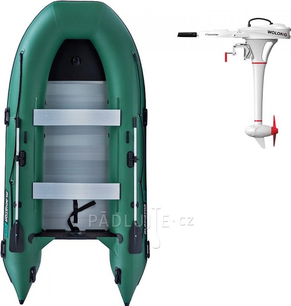 Vlastnosti:délka člunu: 3,70 mšířka člunu: 1,72 mváha: 64 kgprůměr válce: 0,46 mhustota materiálu PVC trubky 850 g/m2hustota spodního materiálu PVC 1100 g/m2podlážka: hliníková, skládacínosnost: 690 kgpočet osob: 5transportní rozměry: 110x68x38cm max. výkon motoru 22,3 kW /30 HPdélka nohy motoru: S (krátká)
