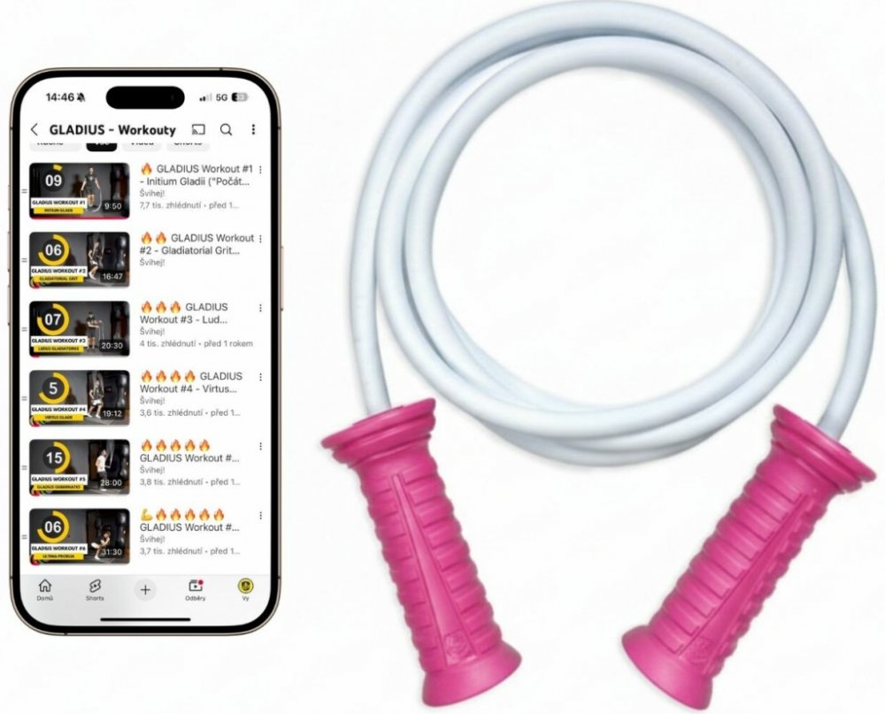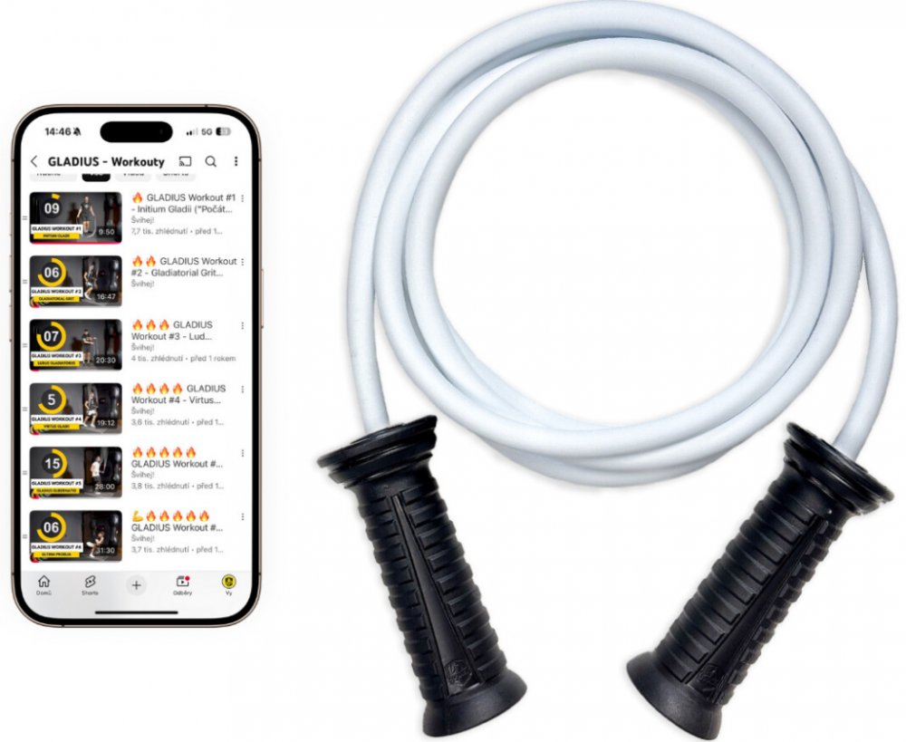 S tréninky s Gladiusem si nelam hlavu. Sestavili jsme 6 video tréninků s různou náročností (označeno počtem plamenů), které obdržíš ke švihadlu ve formě odkazu na YouTube. Pro příklad první video má necelých 10 minut, další videa kolem 20 minut a poslední má dokonce skoro 32 minut. Ale neboj, neskáčeš v kuse. Jsou mezi tím pauzy. Bude to dřina, ale určitě to dáš.