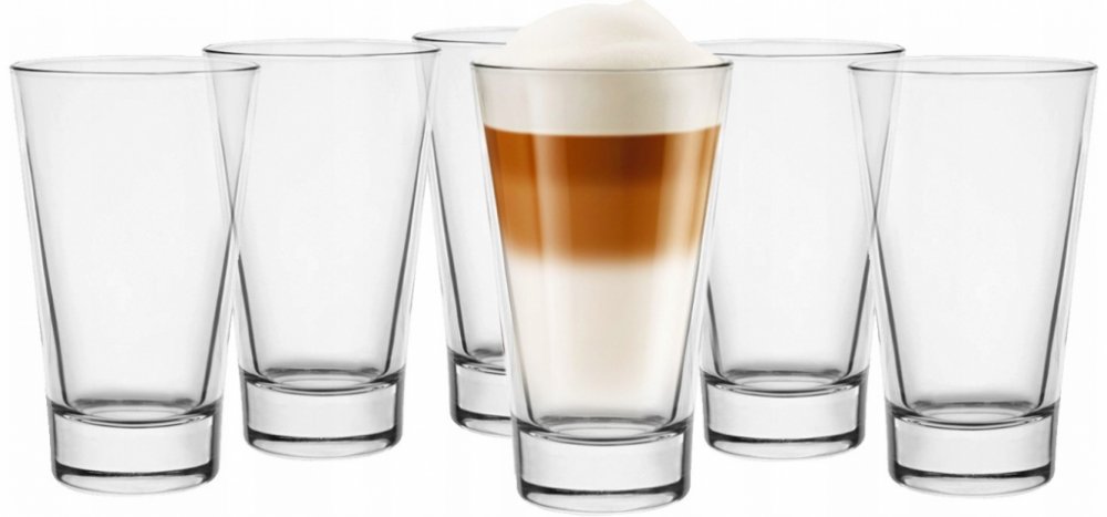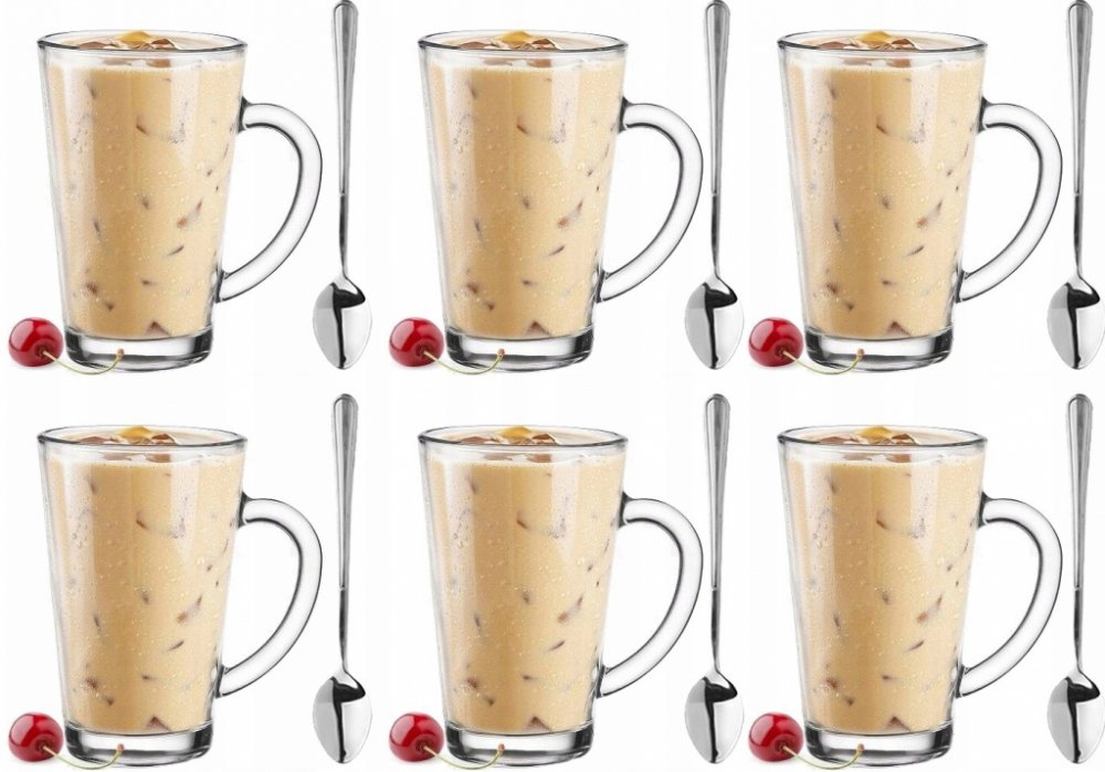 Sada 6 sklenic na kávu Glasmark Latte Macchiato o užitném objemu 300 ml je stabilní a kompletně vyrobena ze skla, což zdůrazňuje krásnou barvu nápojů. Jednoduchý design s uchem zajišťuje pohodlí při používání jak pro horké, tak i studené nápoje. Sklenice jsou odolné vůči změnám teploty – připravíte v nich jak zmrzlinový dezert, tak i svařák. Ideální pro domácí i venkovní použití, například při servírování ledové kávy na zahradě. Sada je také skvělým nápadem dárek . Součástí balení je 6 nerezových koktejlových lžiček, které usnadňují podávání dezertů a míchání kávy.