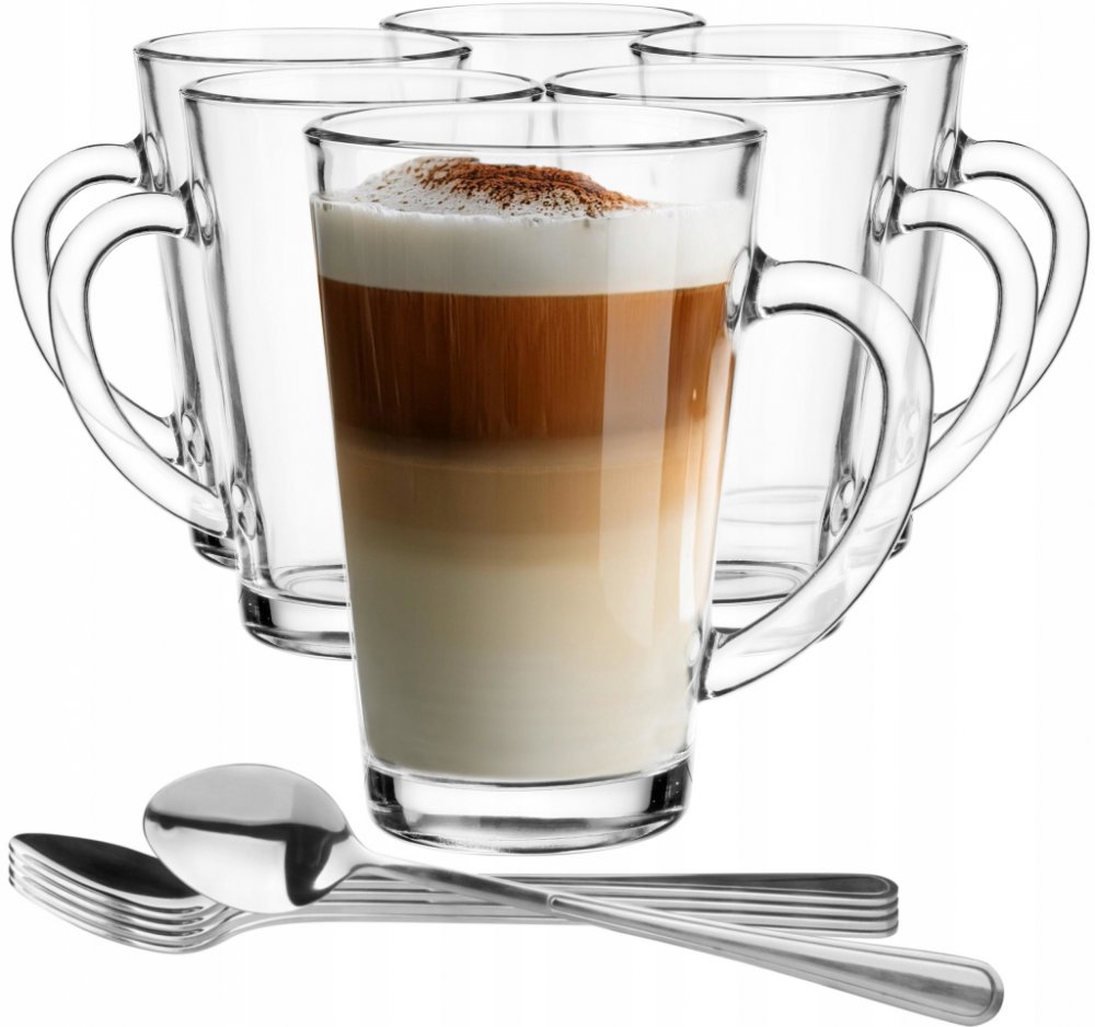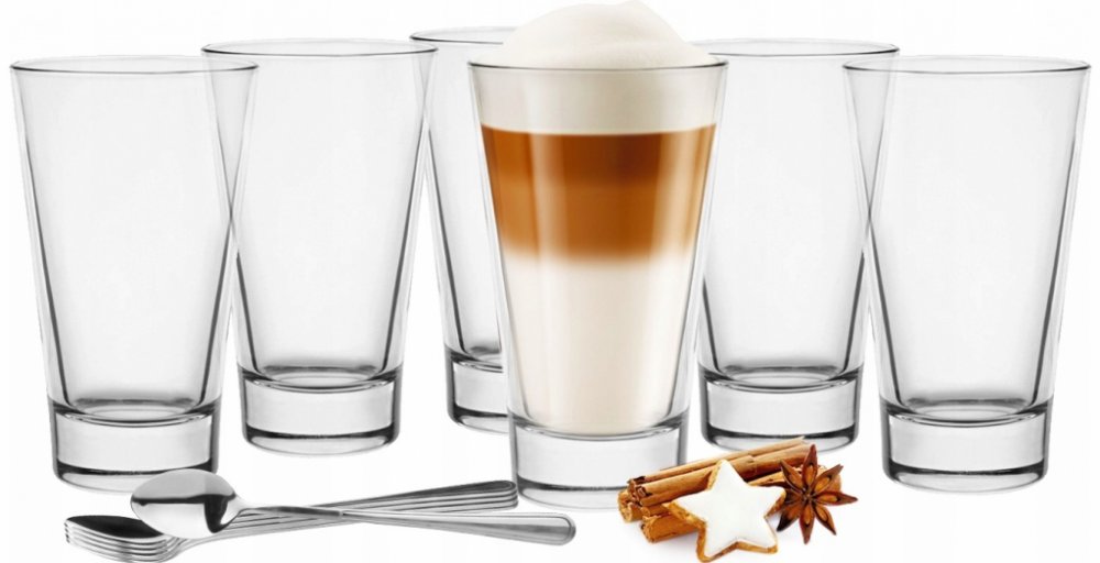 SKLENICE NA KÁVU LATTE Macchiato + LŽIČKY SET